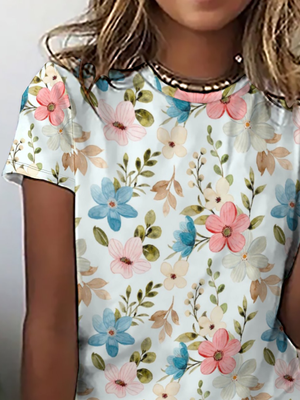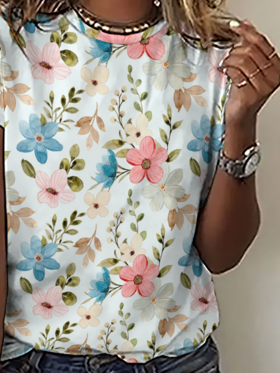 Casual Simple Floral Print Crew Neck Short Sleeve T-Shirt