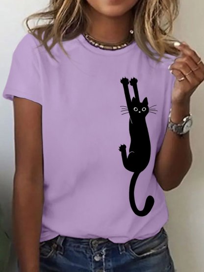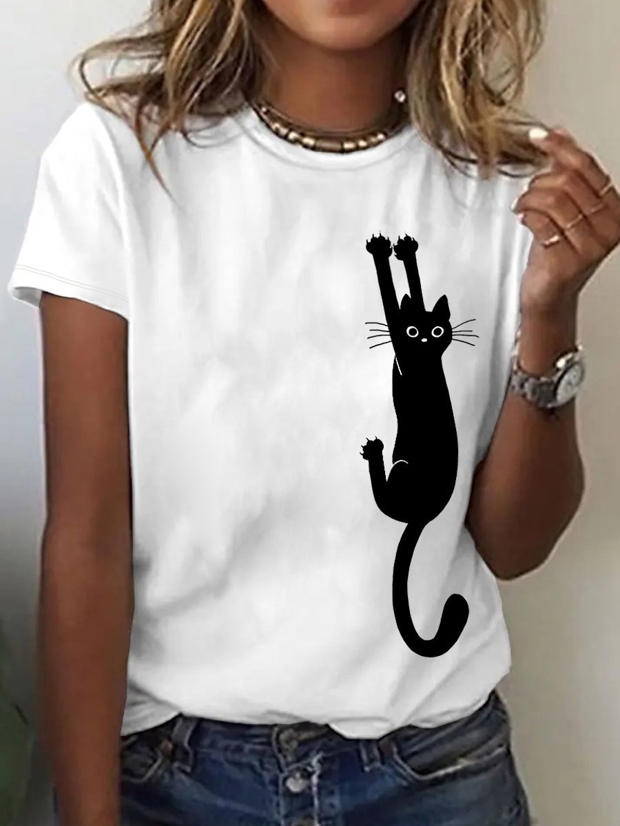 Women's Black Cat Holding On Print Casual T-Shirt