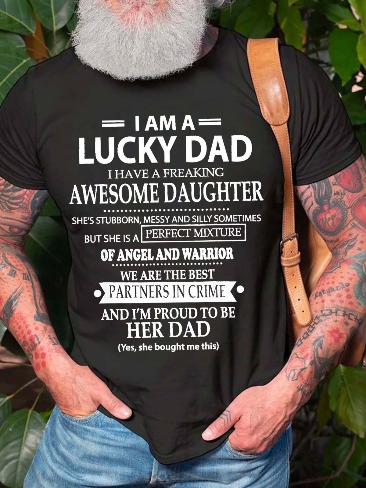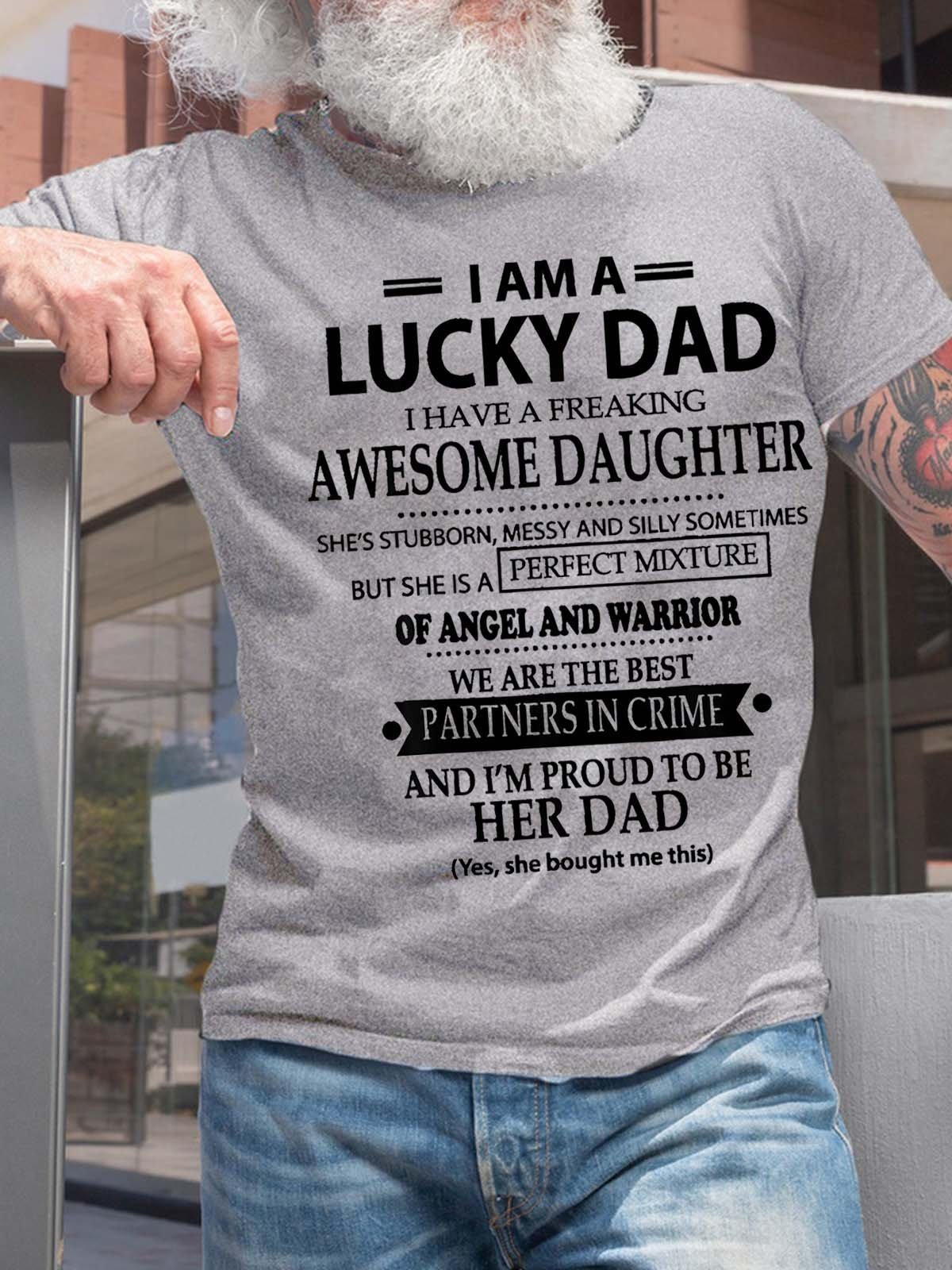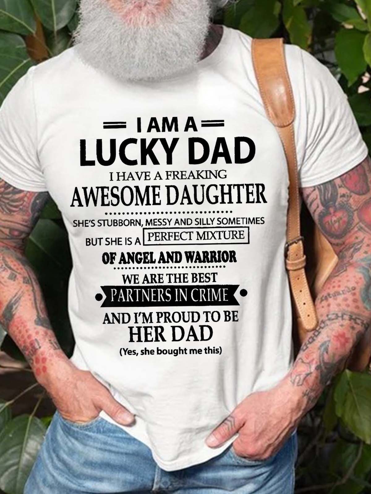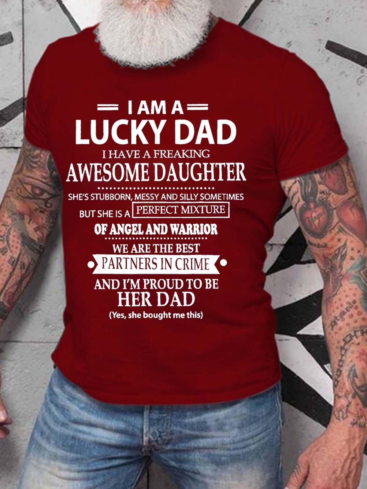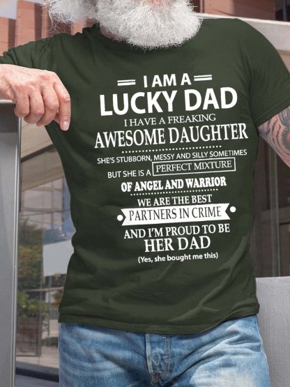 Men I Am A Lucky Dad I Have A Freaking Awesome Daughter Fit Casual Cotton T-Shirt