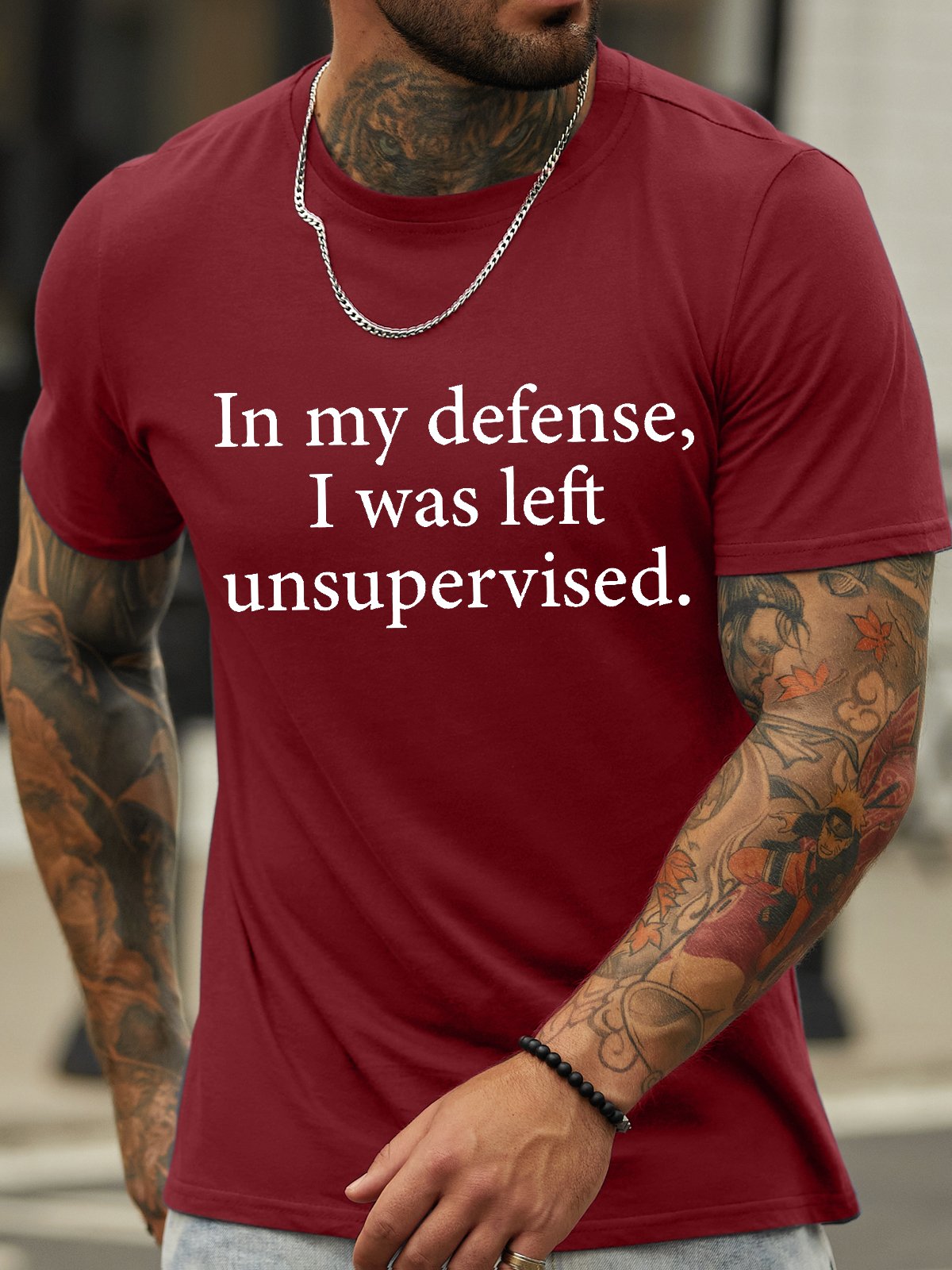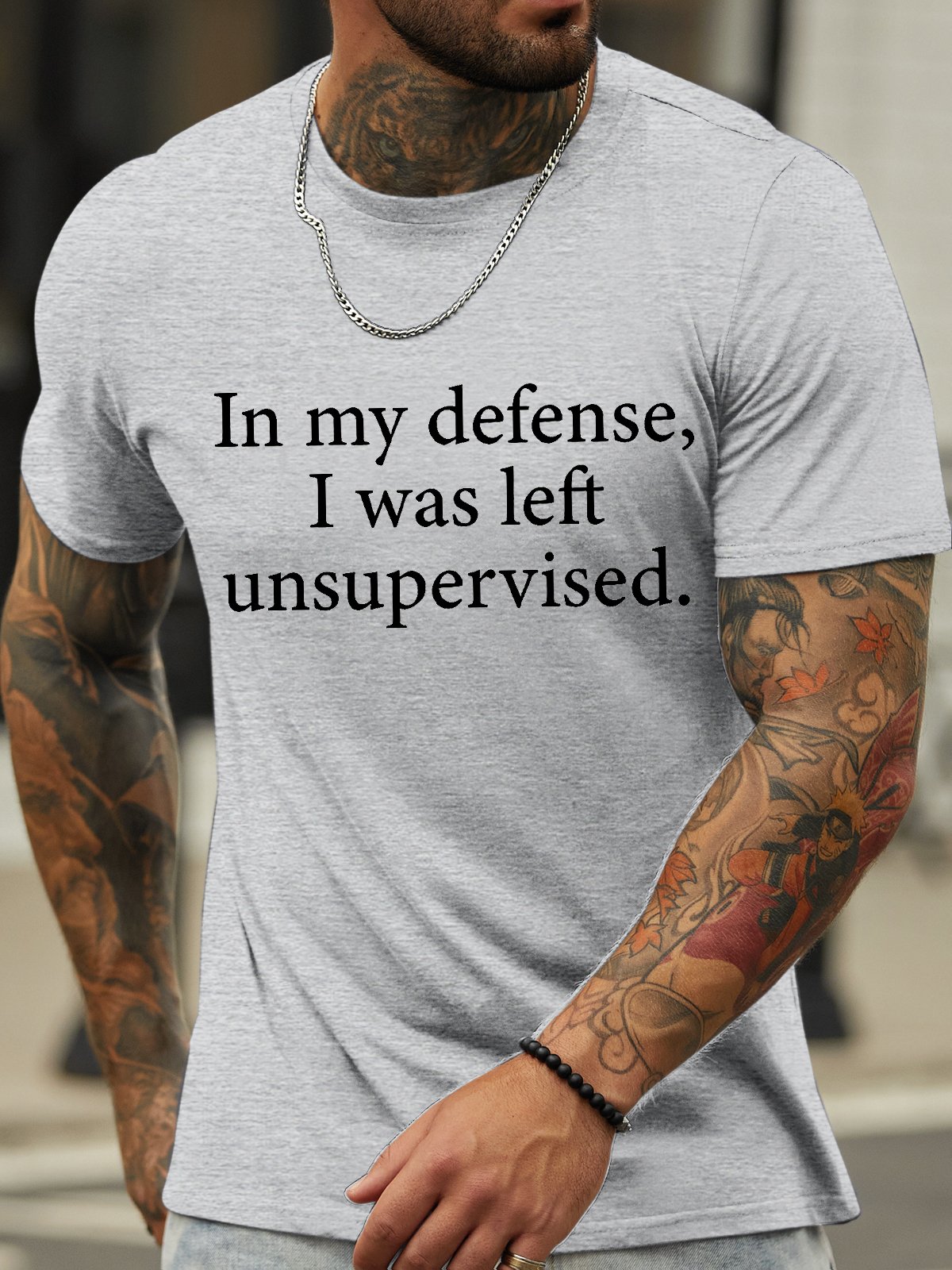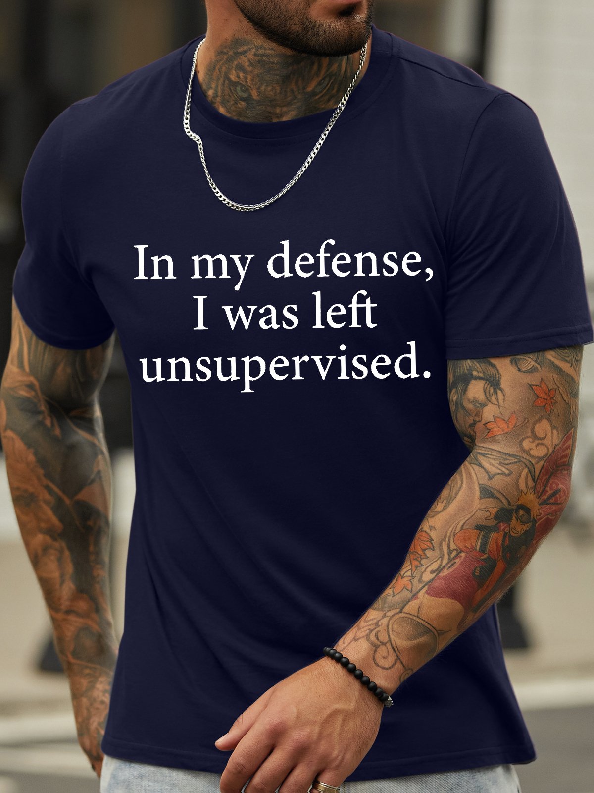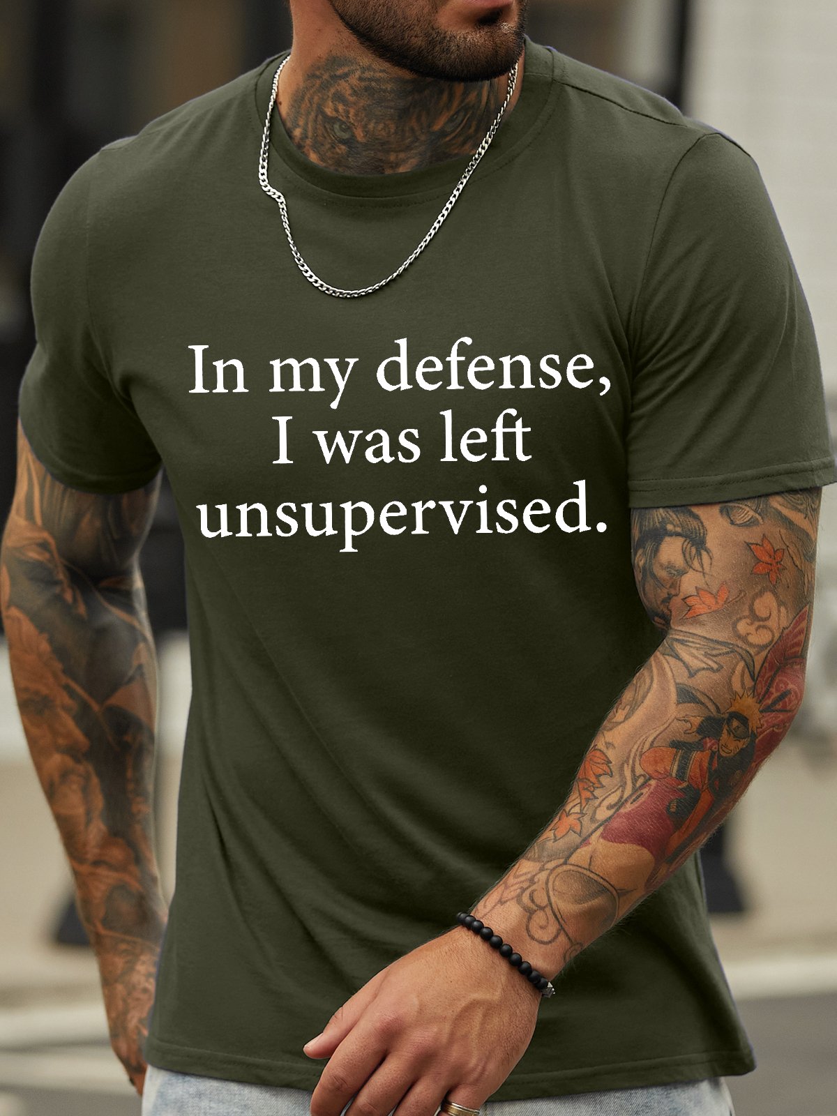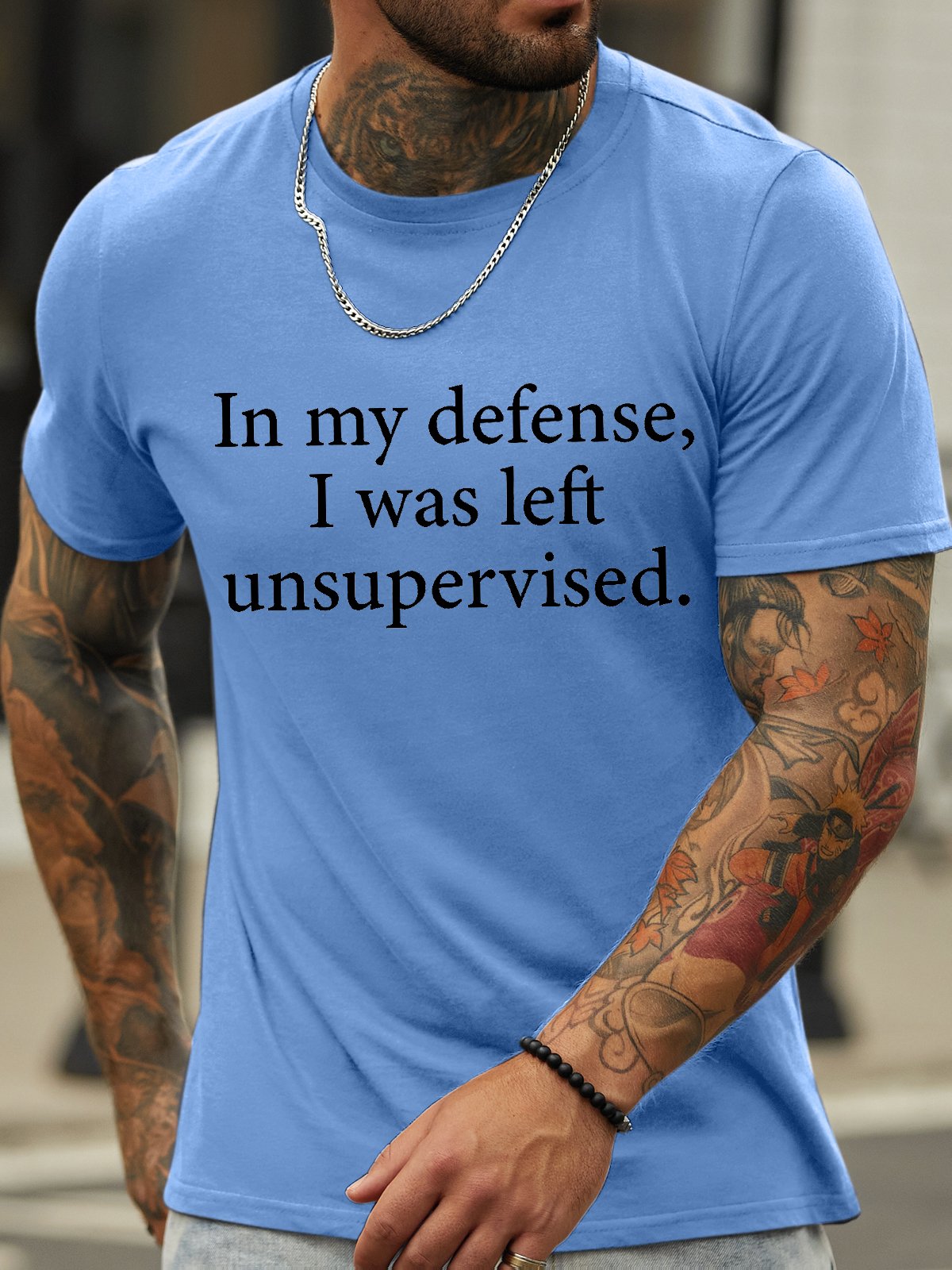 Men's In My Defense I Was Left Unsupervised Funny Graphic Print Cotton Text Letters Casual T-Shirt