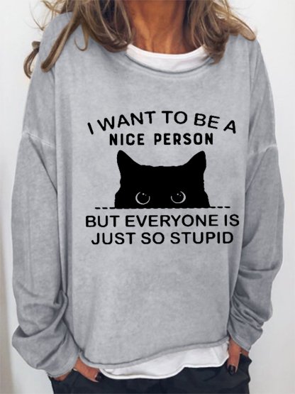 Cat I Want To Be A Nice Person But Everyone Is Just So Stupid Women Cat Sweatshirt