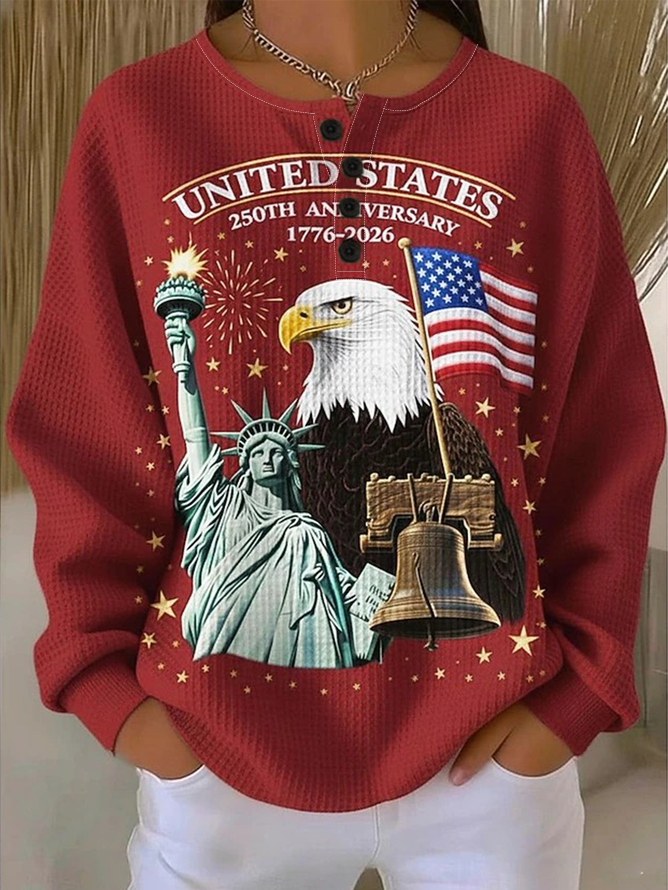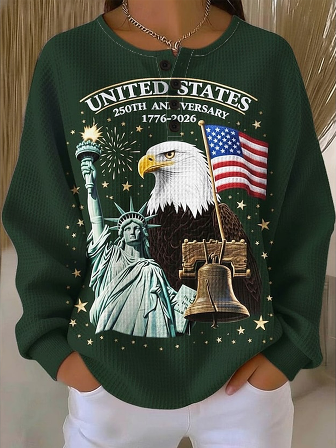 Independence Day Patriotic Long-Sleeved Sweatshirt With Front Buttons