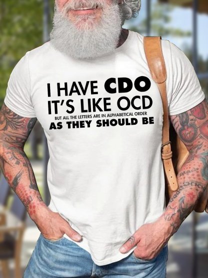 Men's I Have Cdo It Is Like Ocd But As They Should Be Funny Graphic Print Text Letters Cotton Casual T-Shirt