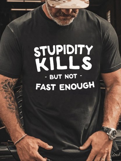 Men’s Casual Cotton Stupidity kills but not fast enough T-Shirt