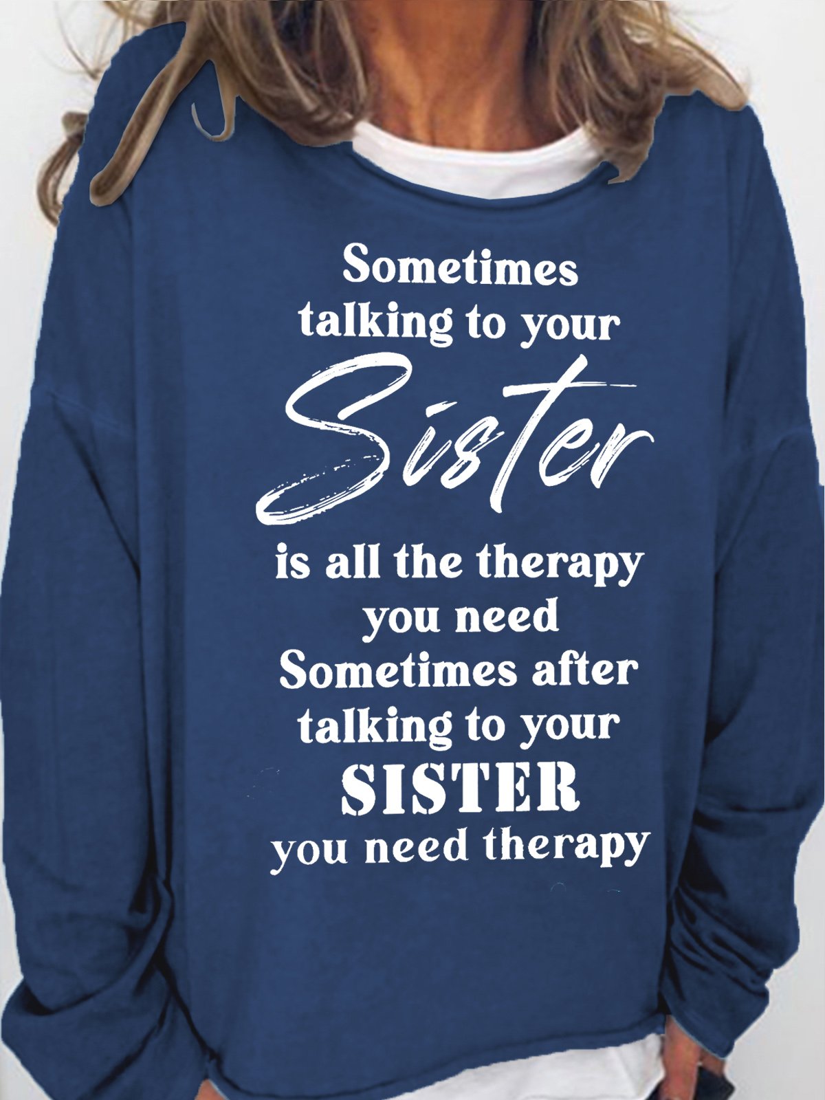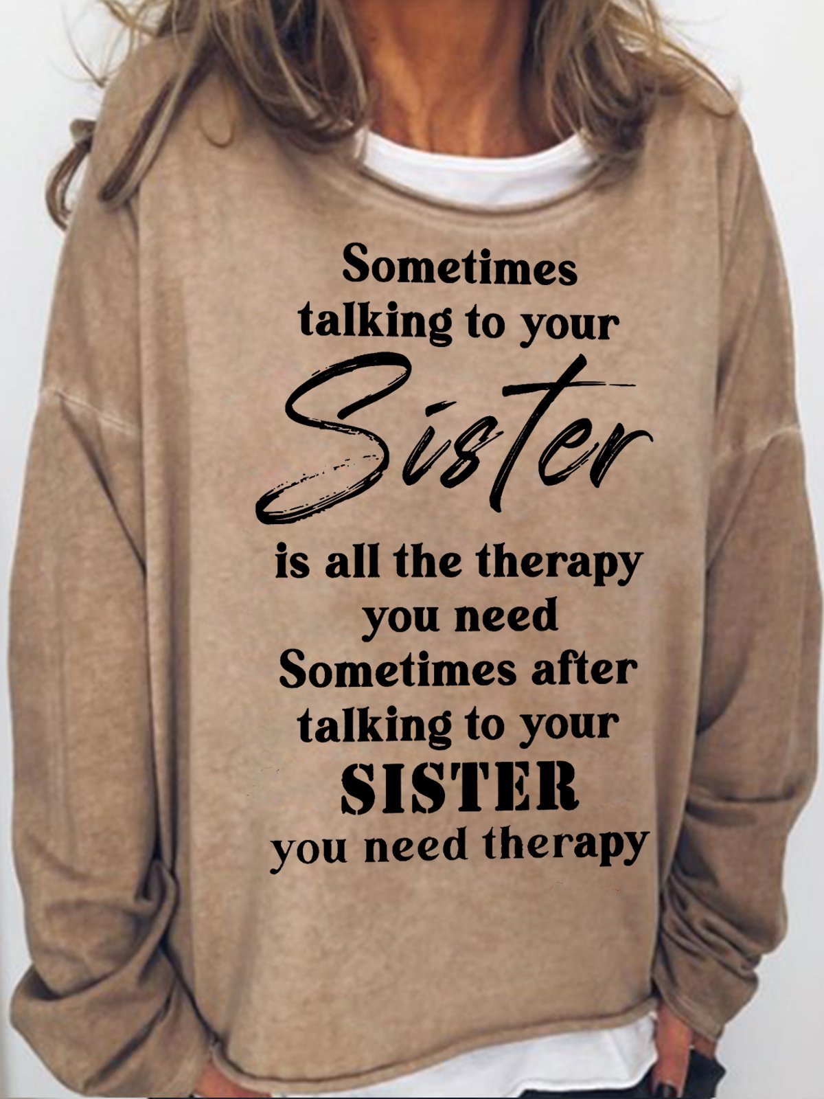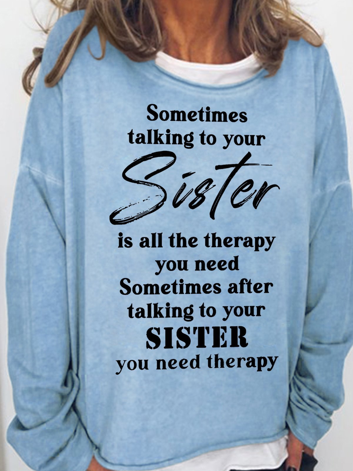 Womens Funny Letters Casual Sometimes Talking to Your Sister is All The Therapy You Need Sweatshirt