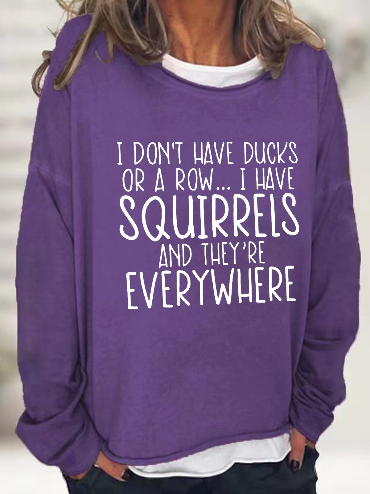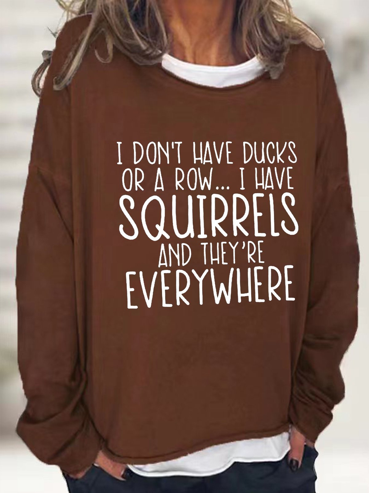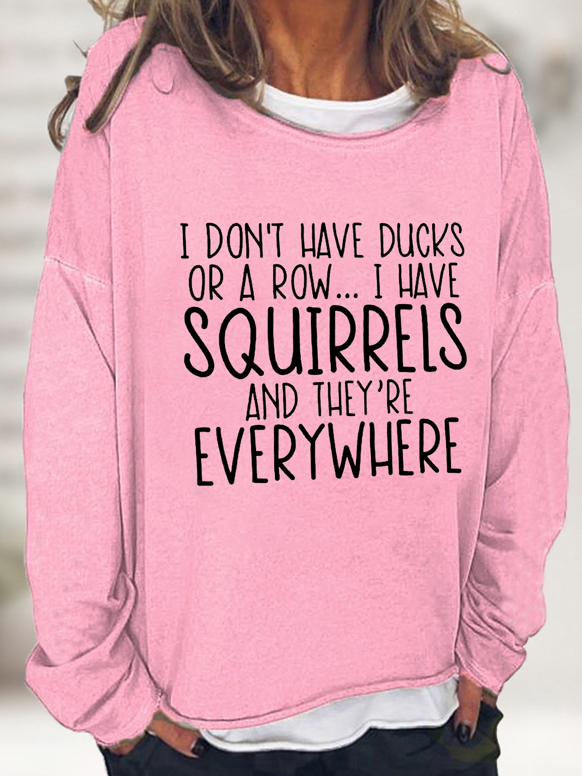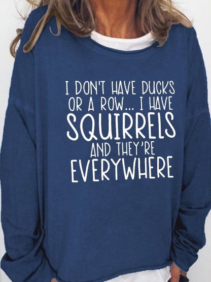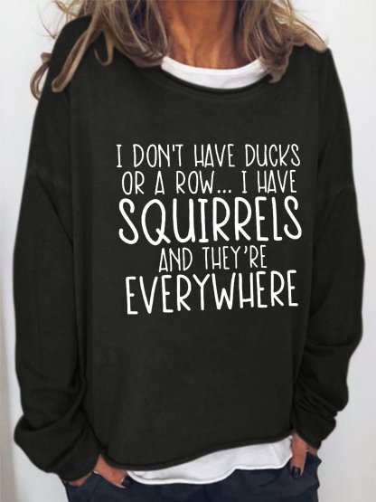 Women's I Don't Have Ducks Or A Row I Have Squirrels Funny Text Letters Loose Sweatshirt