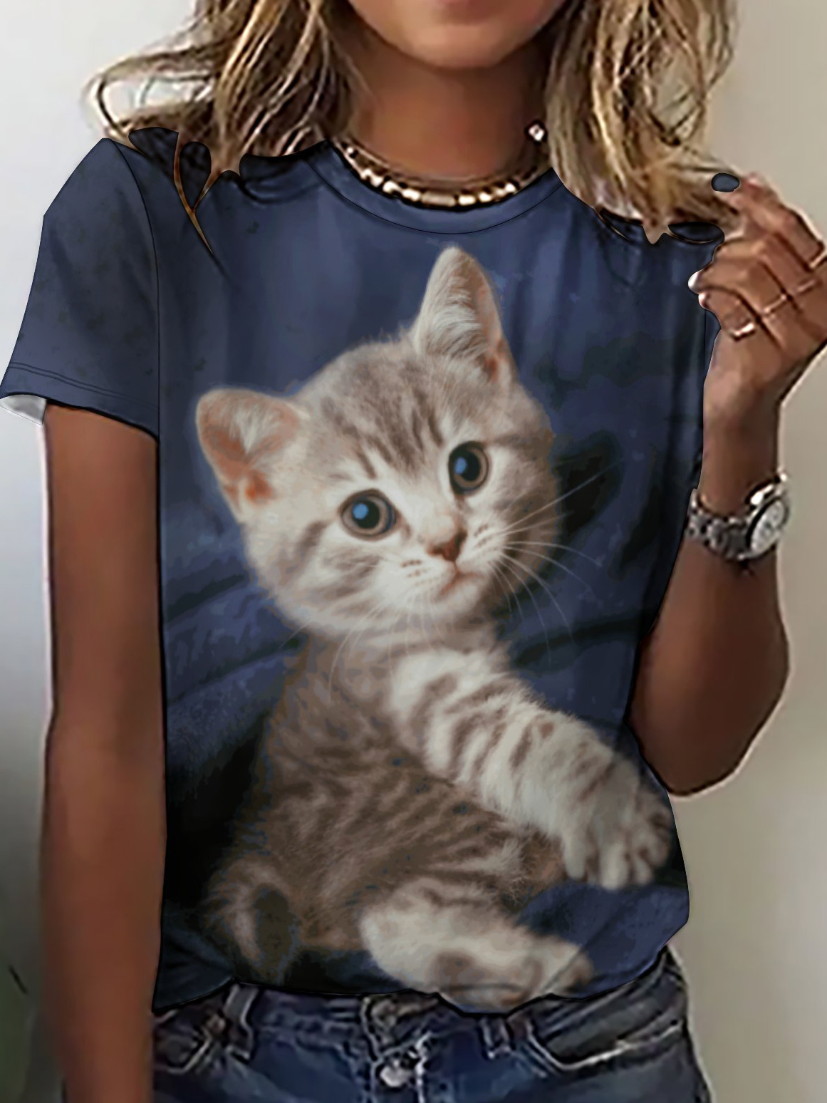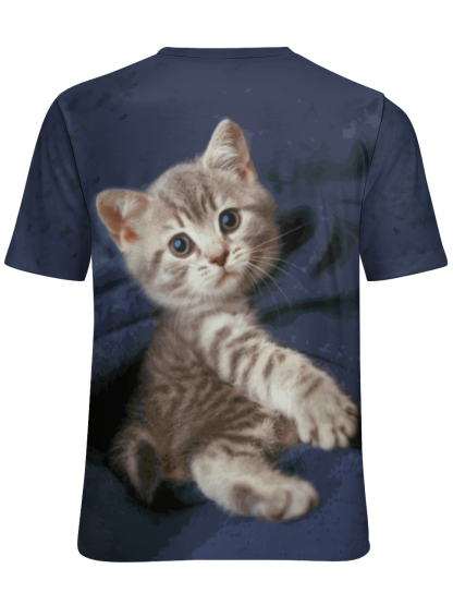 Women's Funny Cat Loose Simple Color Block Crew Neck T-Shirt