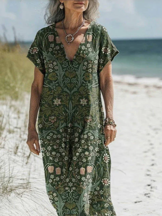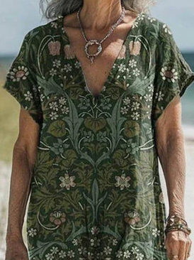 Women's Vintage Floral Print V-Neck Dress