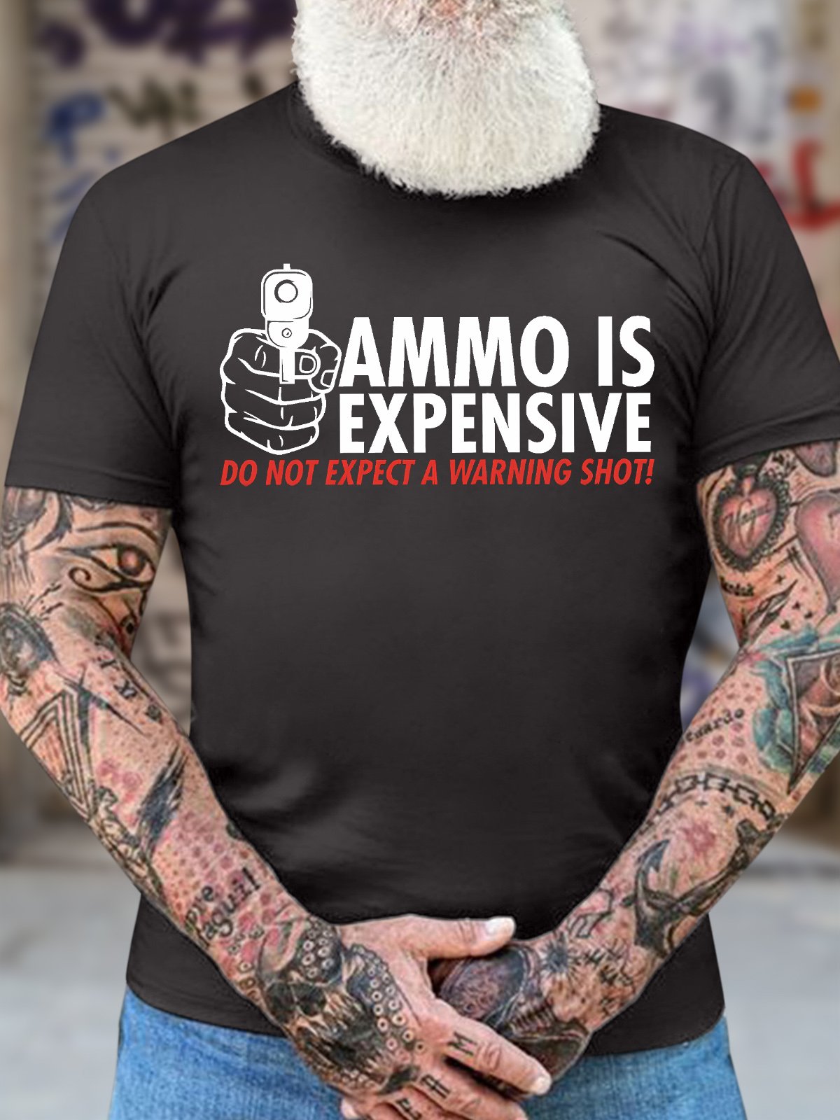 Men's Ammo Is Expensive Do Not Expect A Warning Shot Funny Graphic Printing Casual Cotton Text Letters Crew Neck T-Shirt