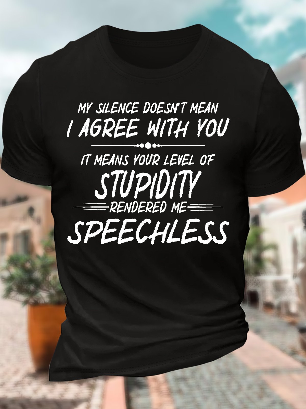 Men’s My Silence Doesn’t Mean I Agree With You It Means Your Level Of Stupidity Casual Text Letters T-Shirt