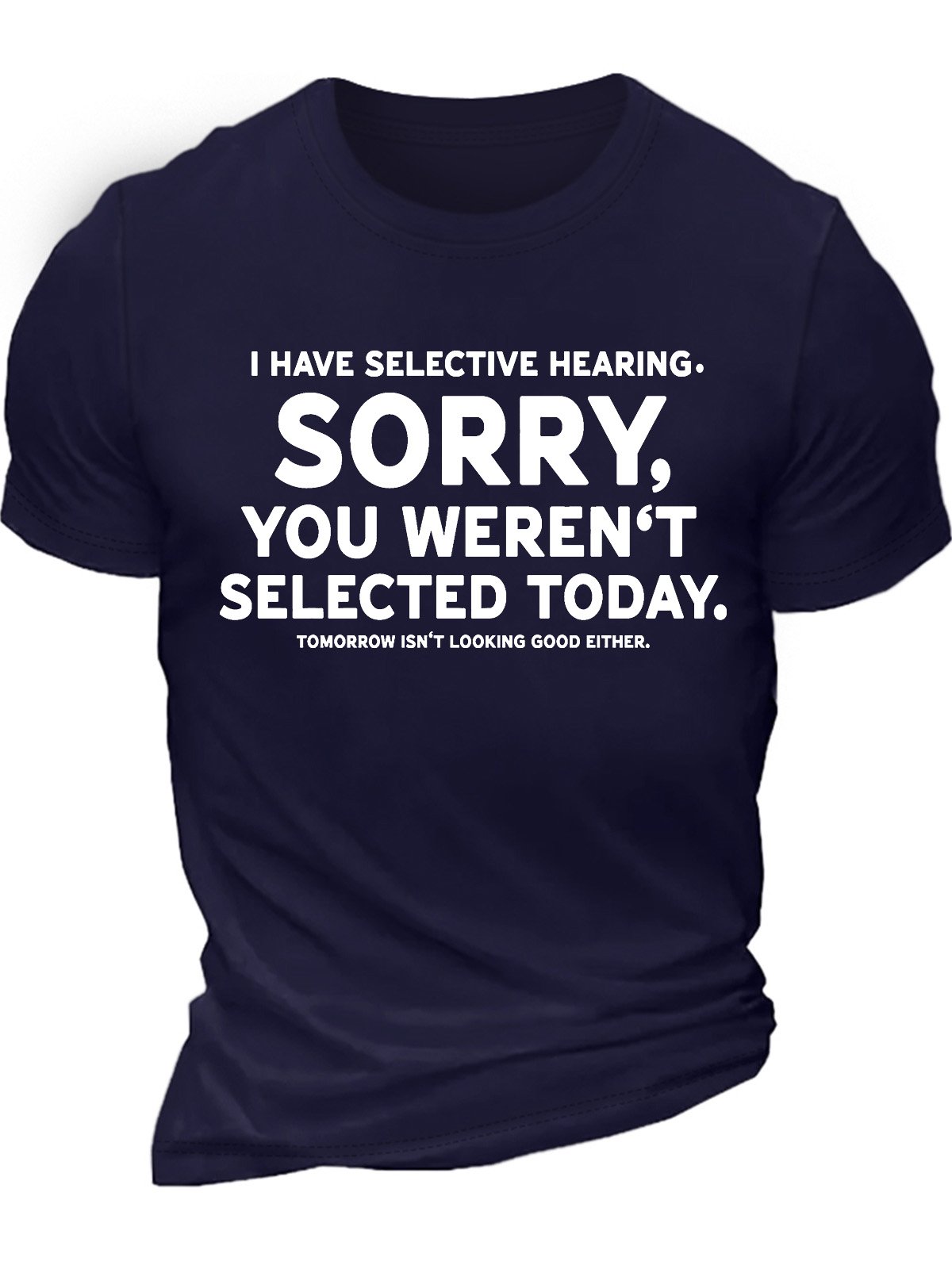 Men’s I Have Selective Hearing Sorry You Weren’t Selected Today Tomorrow Isn’t Looking Good Either Casual Cotton Text Letters Crew Neck T-Shirt