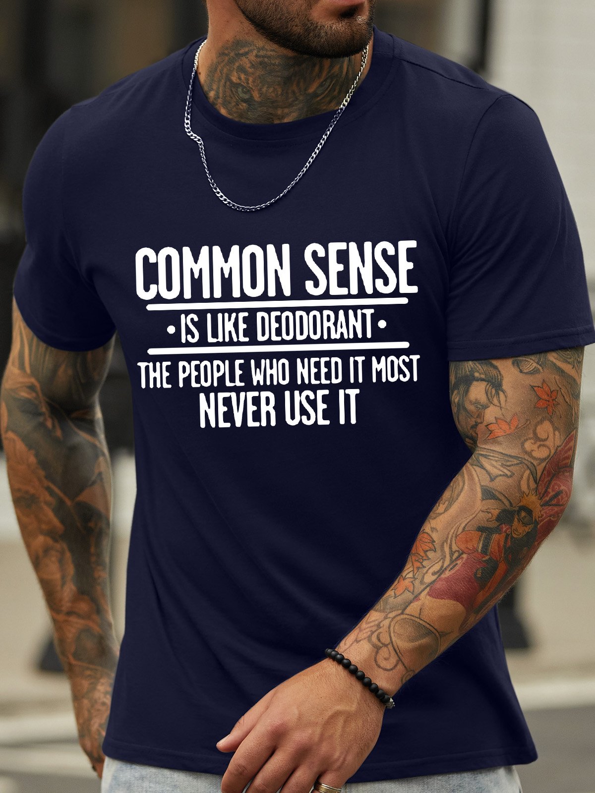 Men’s Common Sense Is Like Deodorant The People Who Need It Most Never Ues It Cotton Regular Fit Casual T-Shirt