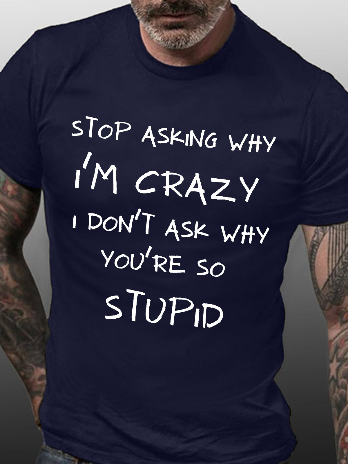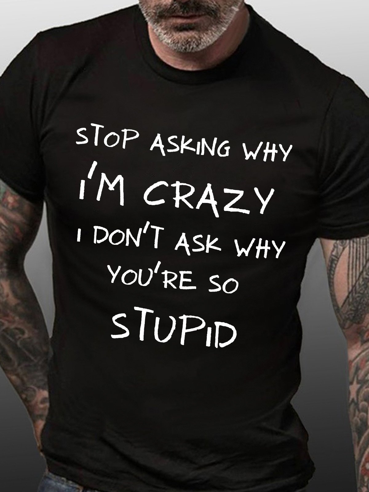 Men’s Stop Asking Why I’m Crazy I Don’t Ask Why You’re So Stupid Regular Fit Crew Neck Casual T-Shirt