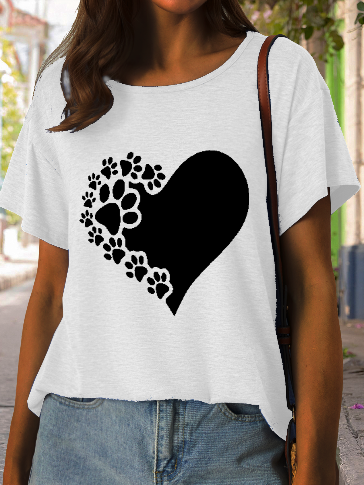 Women's Funny Paw Love Print Casual Crew Neck T-Shirt