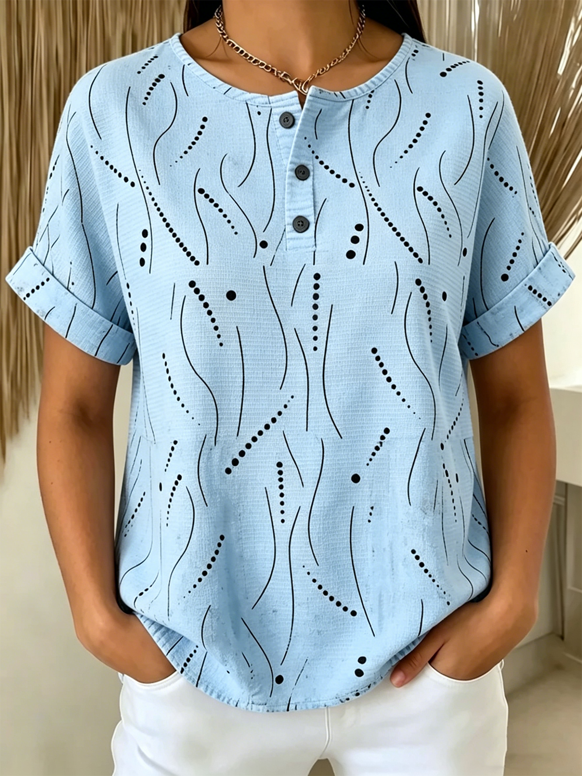 Women's Half Sleeve Blouse Summer Blue Striped Printing Crew Neck Daily Going Out Vintage Top
