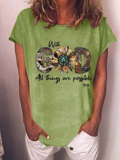 Women's God Sunflower Loose Casual Crew Neck Leopard T-Shirt
