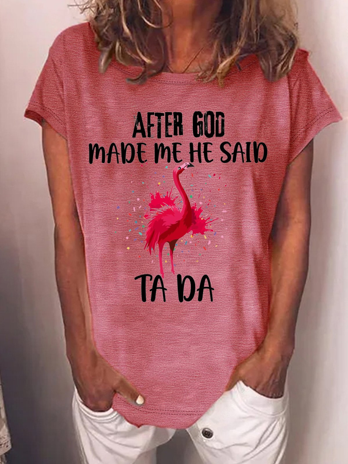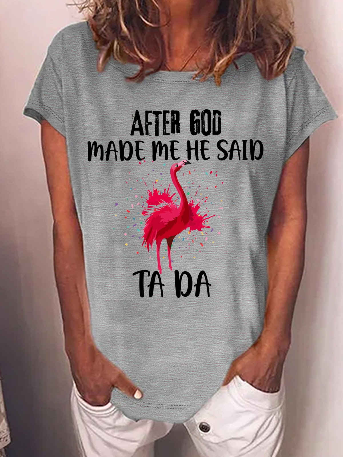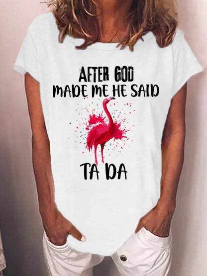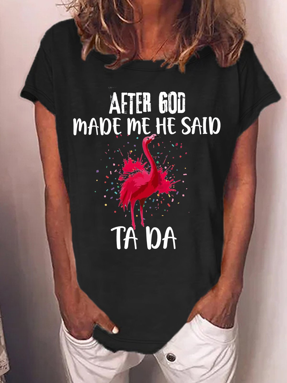 Women's After God Made Me He Said Ta Da Funny Graphic Printing Crew Neck Text Letters Casual Loose T-Shirt