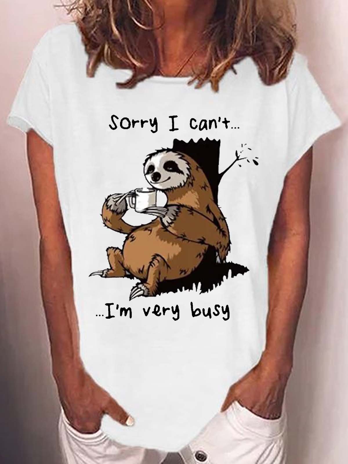 Women's Funny Sloth Sorry I Can't I'm Very Busy Print Casual T-Shirt