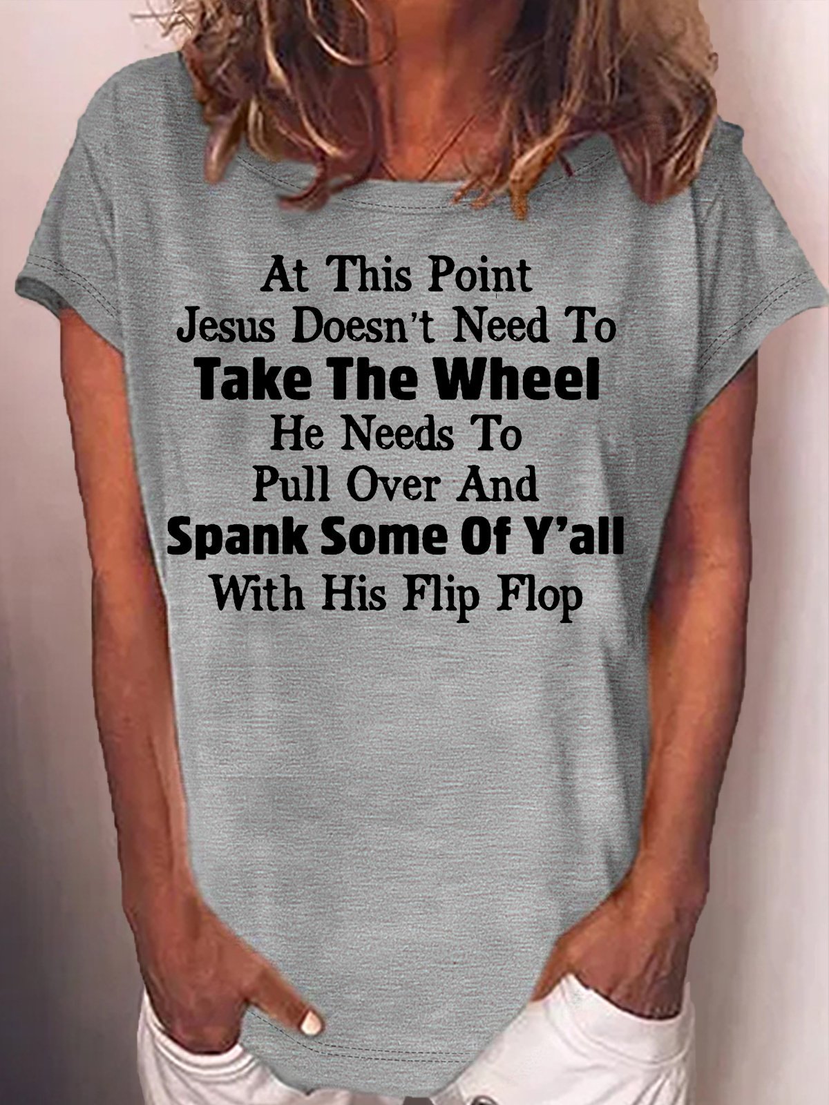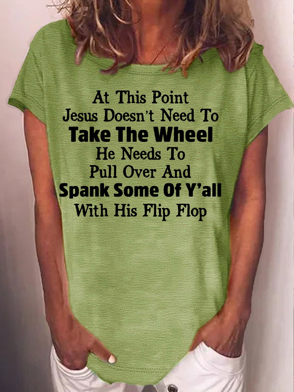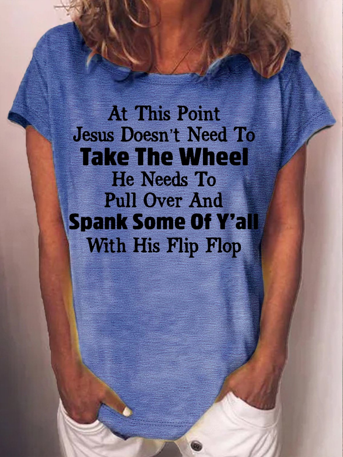 Women's At this point jesus doesn’t need to take the wheel he needs to pull over and spank some of y’all Letters Casual Loose T-Shirt