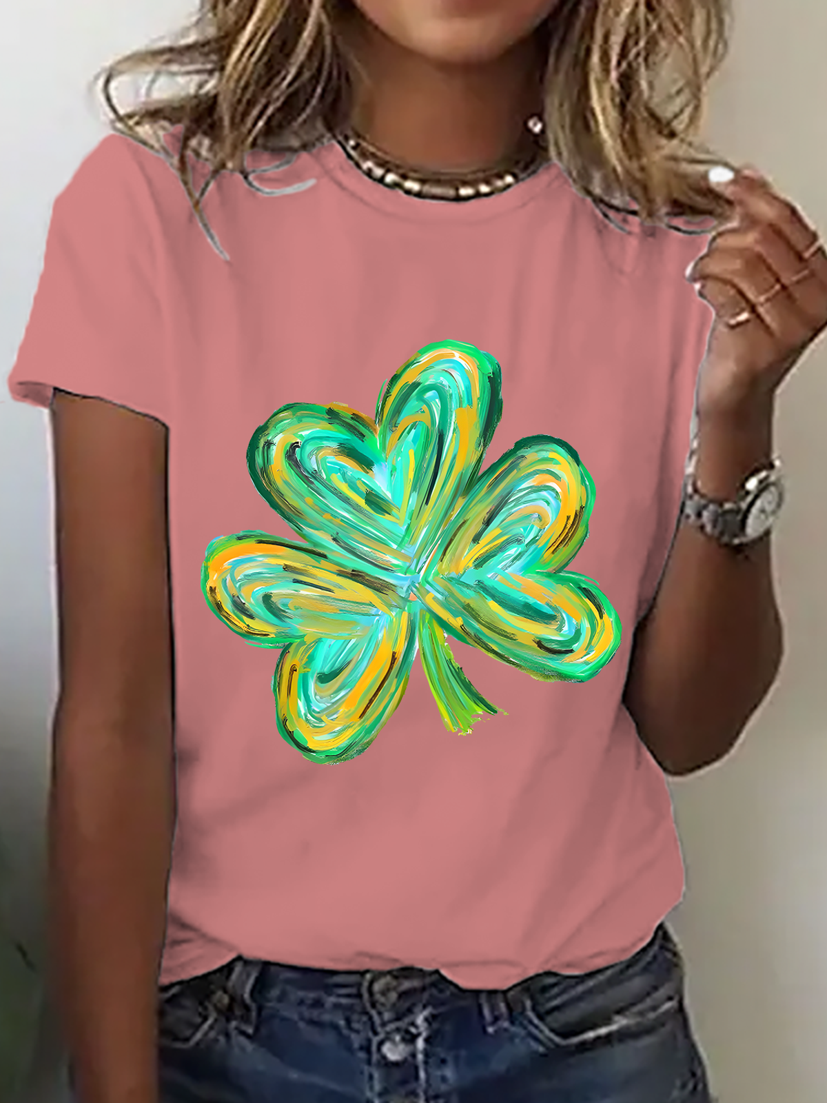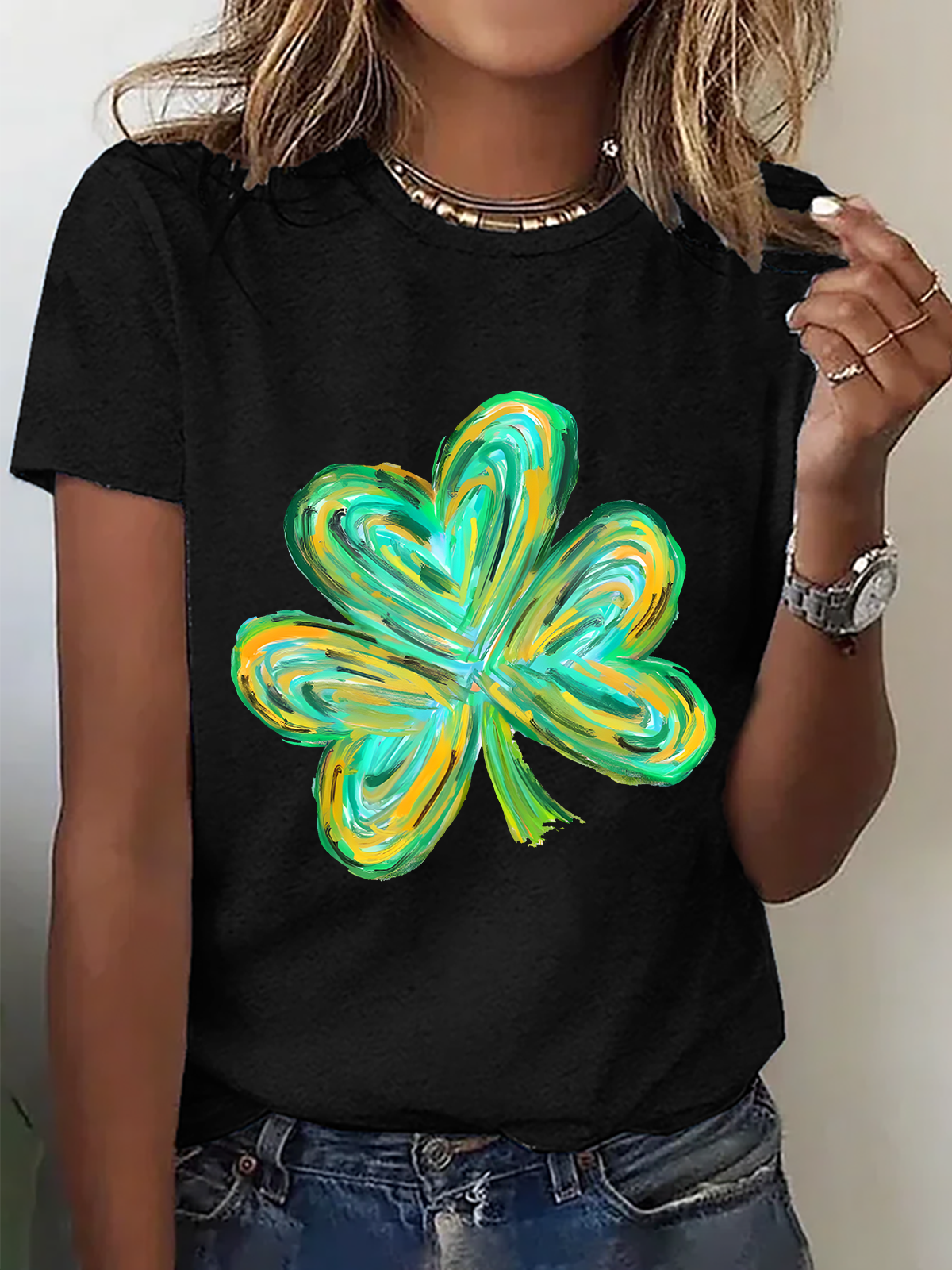 Colorful Clover St Patrick's Day Cotton T-Shirt