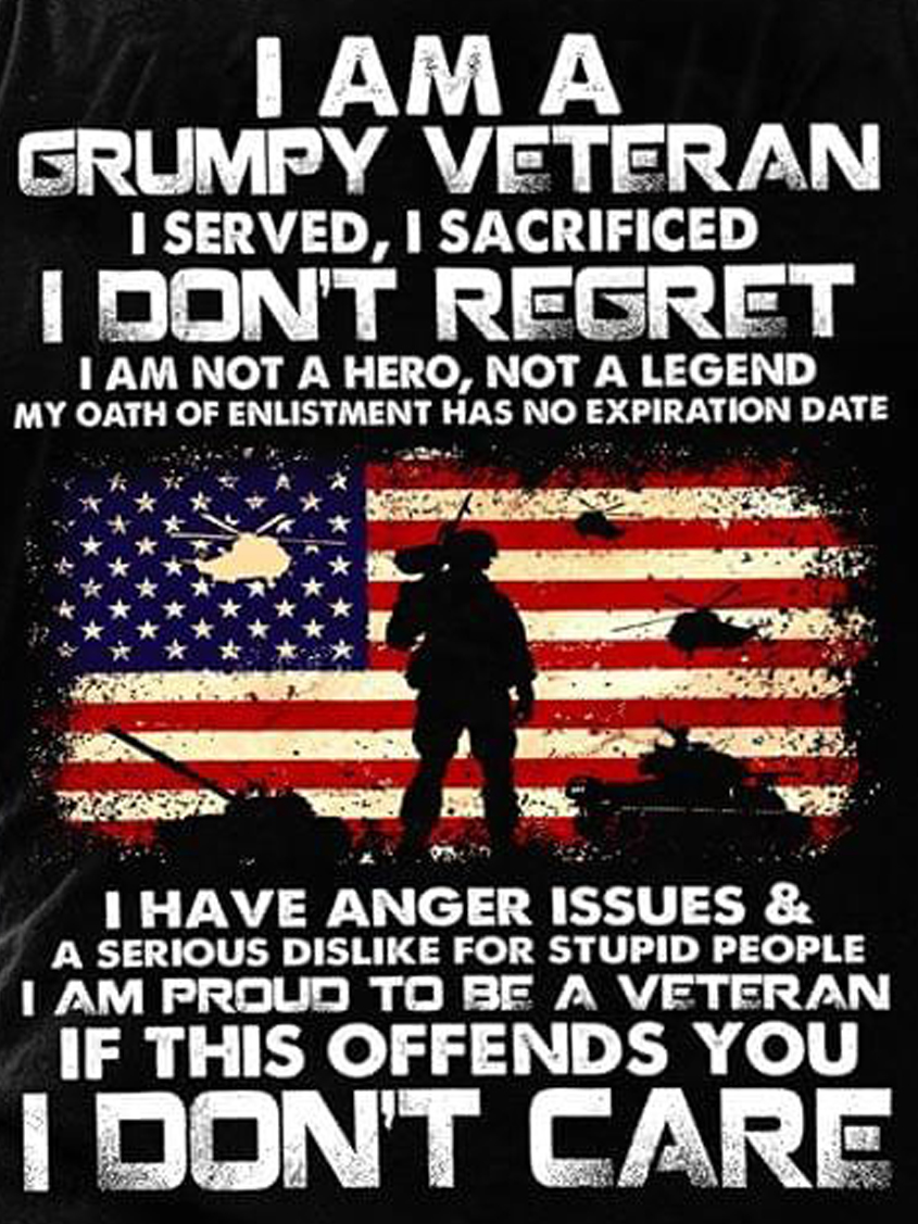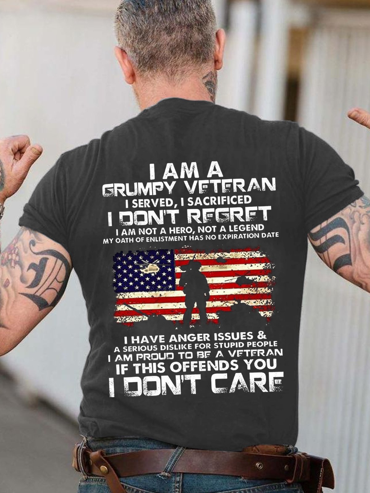I Am A Grumpy Veteran I Served I Sacrificed I Don't Regret Vintage Crew Neck Cotton Short Sleeve T-Shirt