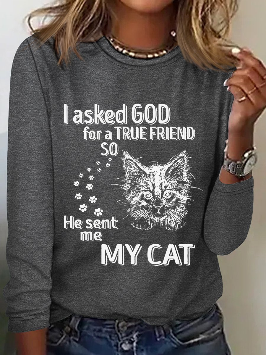 I Asked God For A True Friend So He Sent Me My Cat Sarcastic Long sleeve Shirt