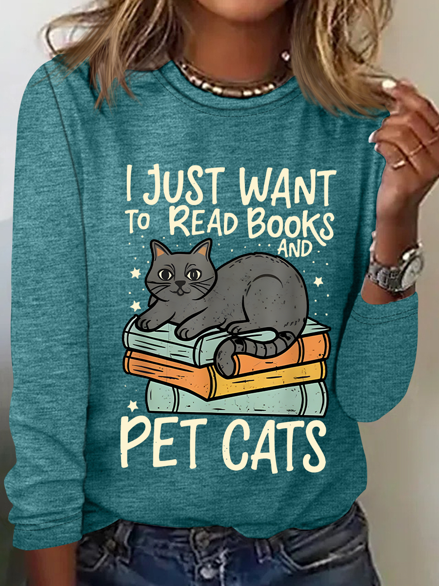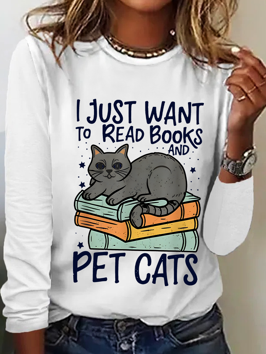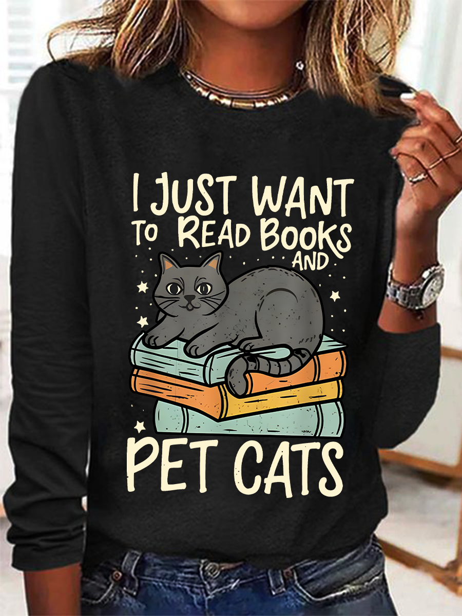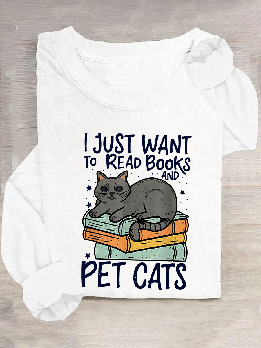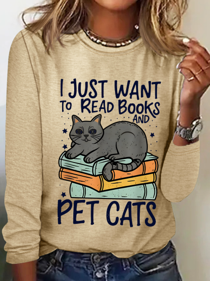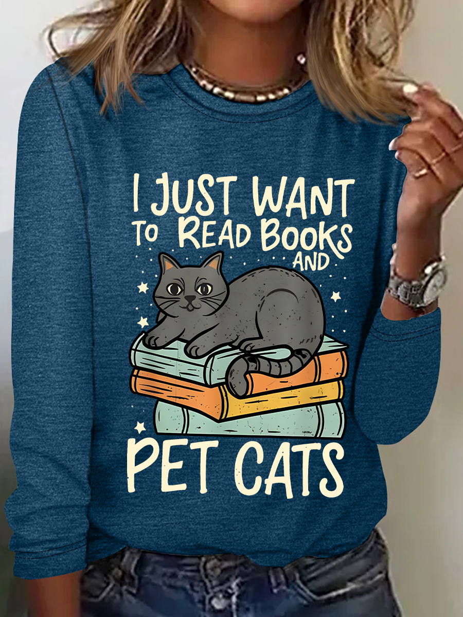 I Just Want To Read Books And Pet Cats Casual Long Sleeve Shirt