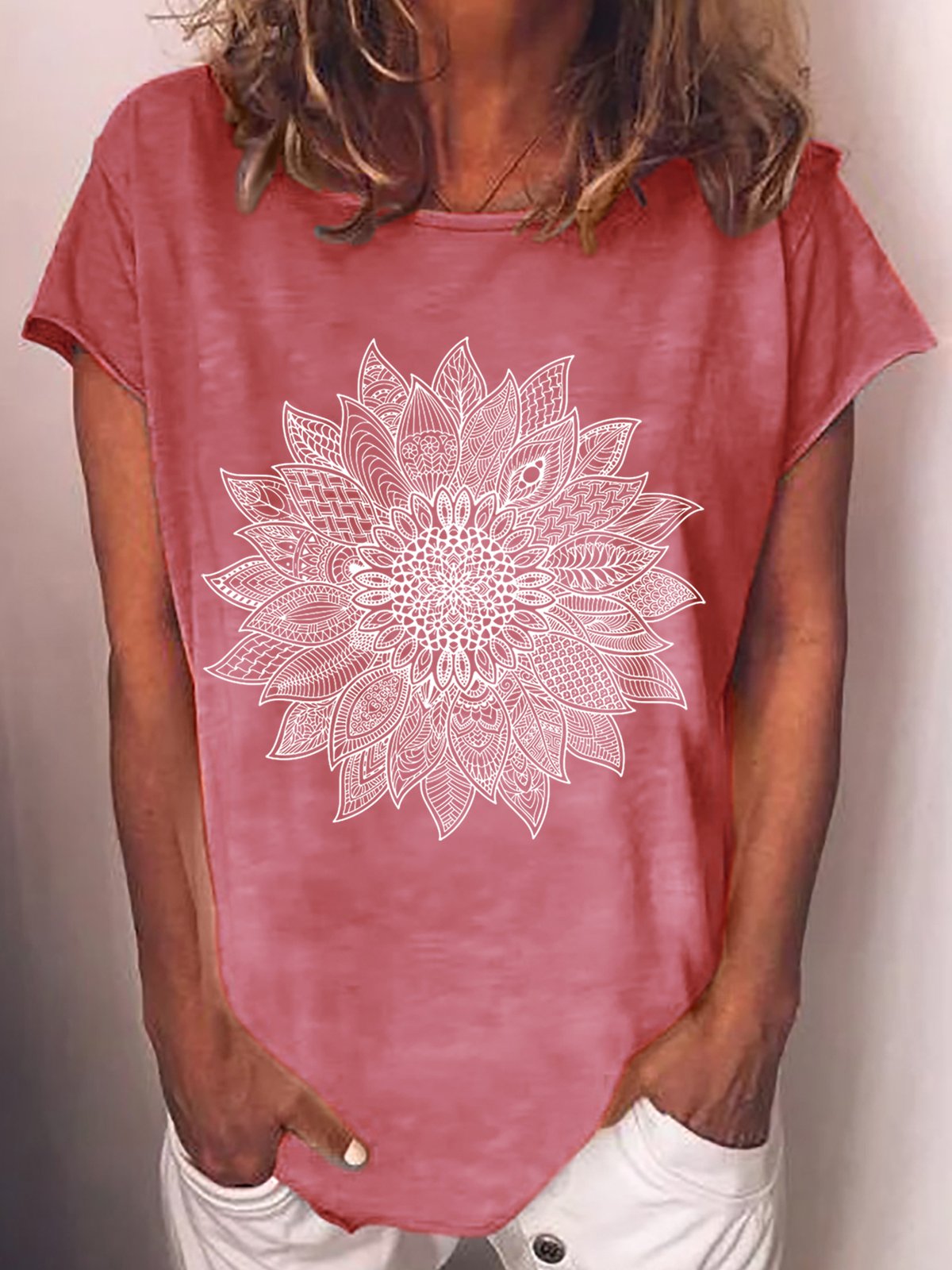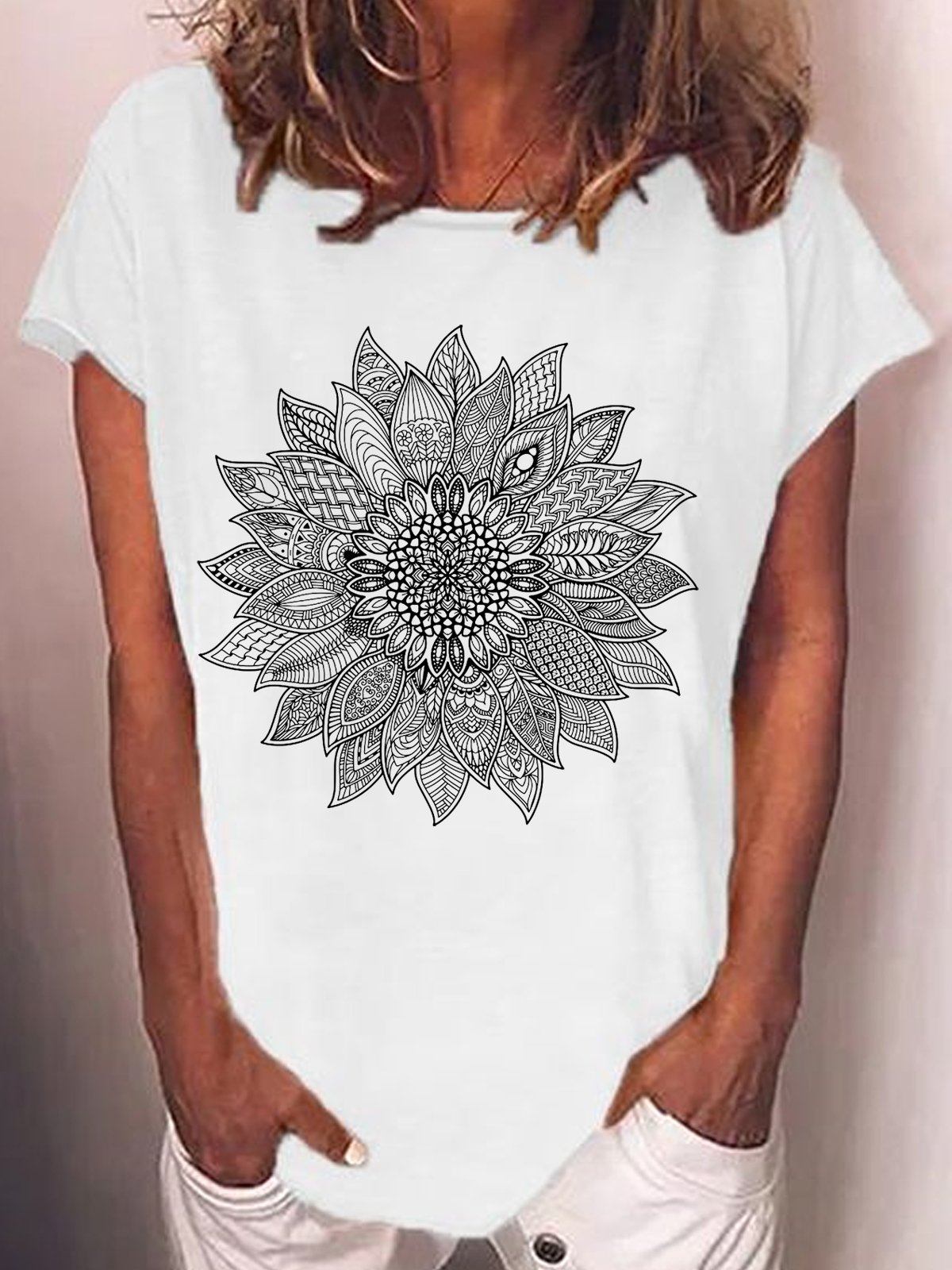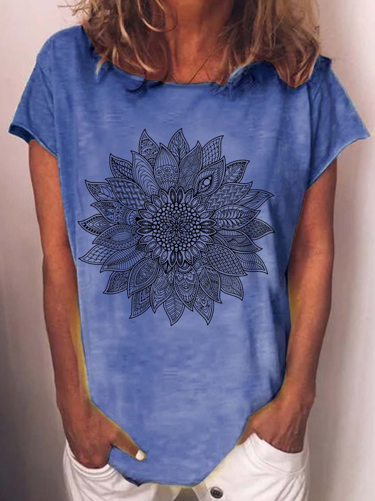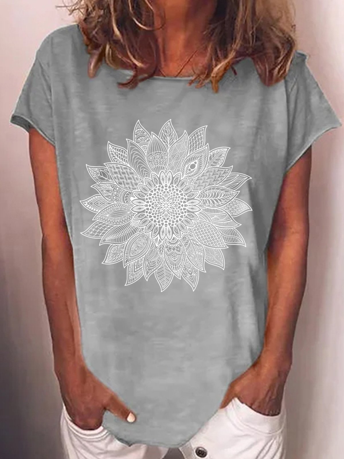 Women's Sunflower Zentangle Print Casual Crew Neck T-Shirt