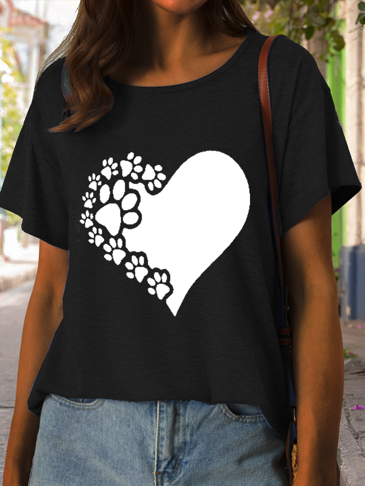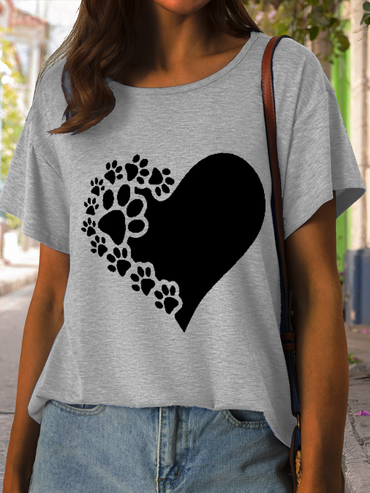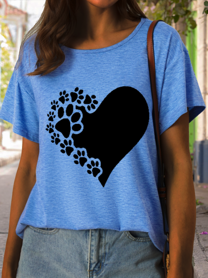 Women's Funny Paw Love Print Casual Crew Neck T-Shirt