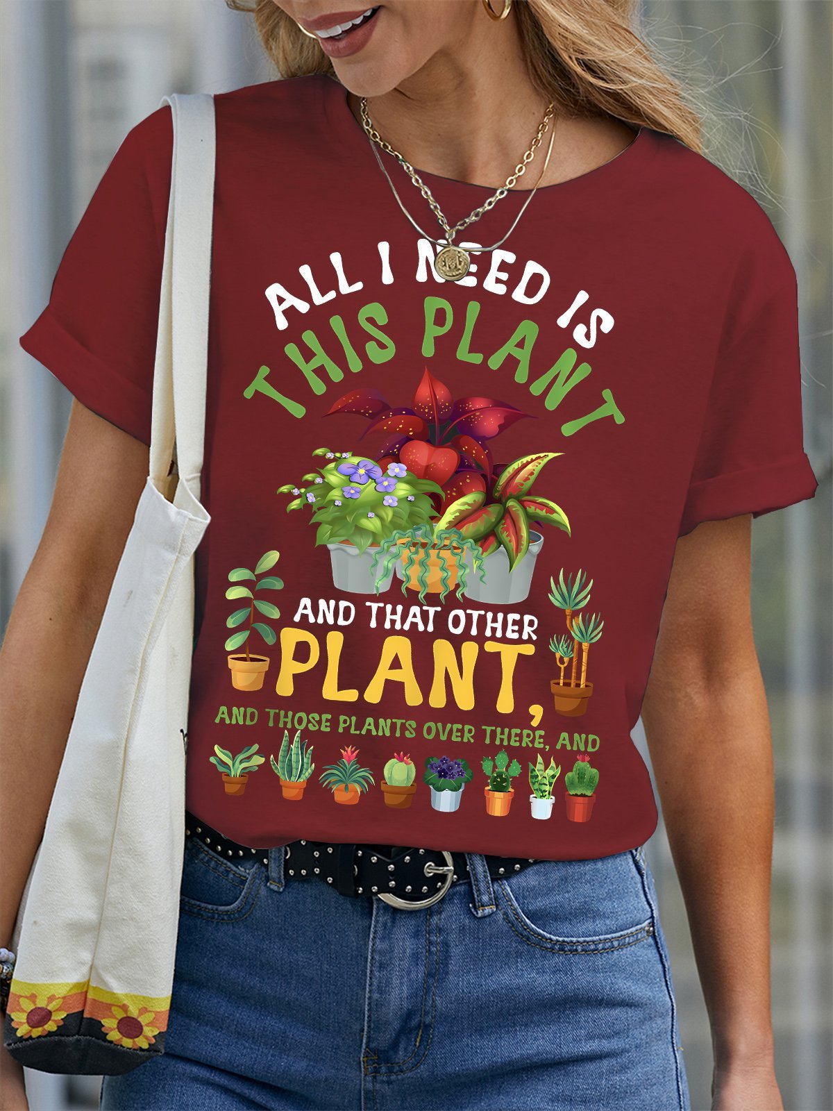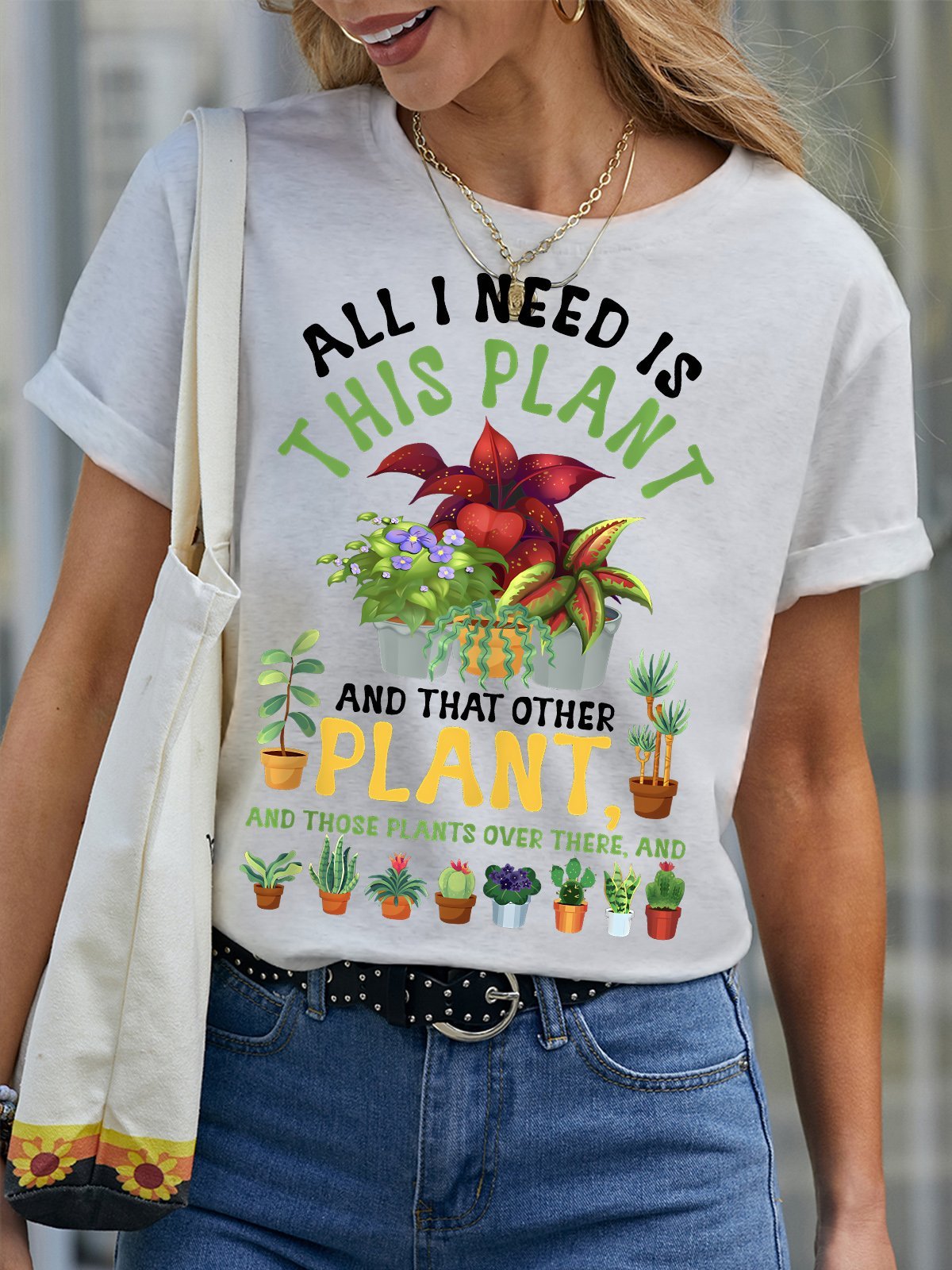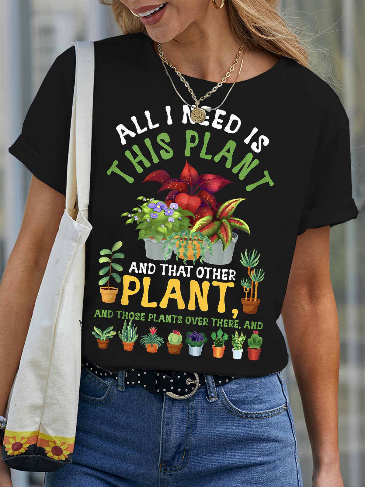 Women's All I Need Is This Plant And That Other Plant And Those Plants Over There And Funny Graphic Printing Text Letters Cotton Crew Neck Casual T-Shirt