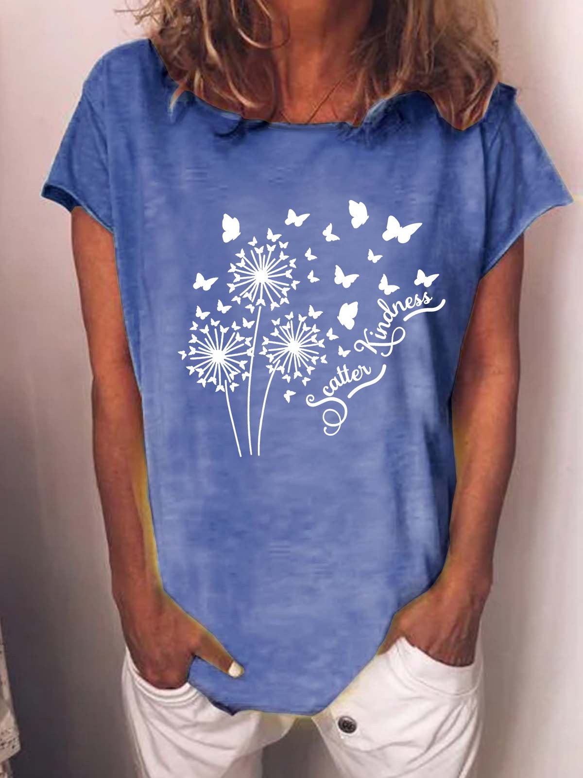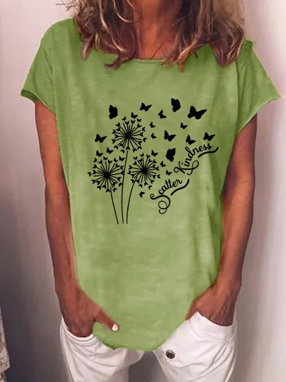 Women‘s Scatter Kindness Dandelion Butterflies Casual Cotton-Blend T-Shirt