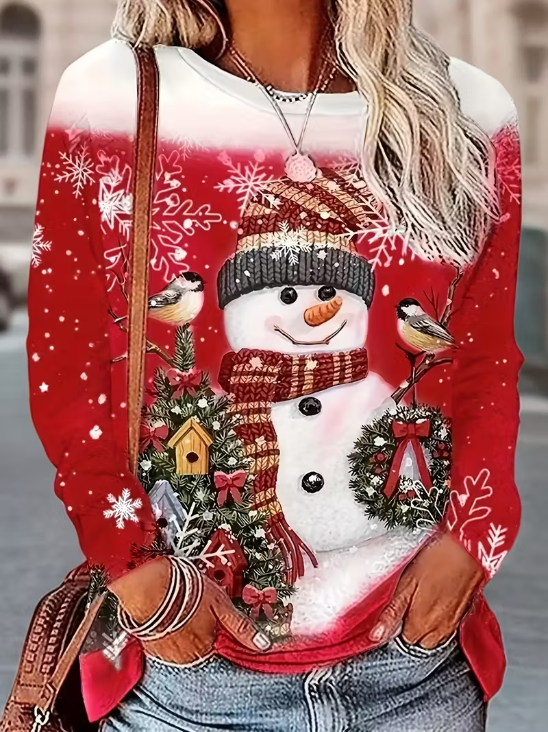Women's Long Sleeve T-shirt Spring/Fall Red Christmas Printing Jersey Crew Neck Daily Going Out Casual Top