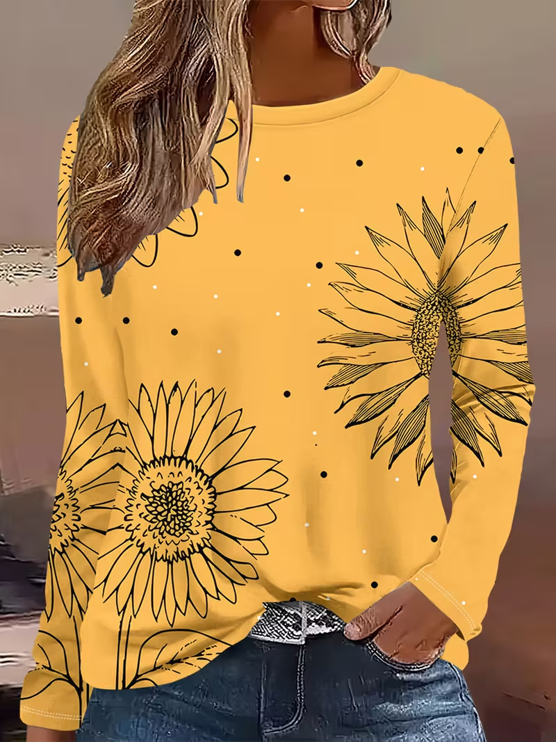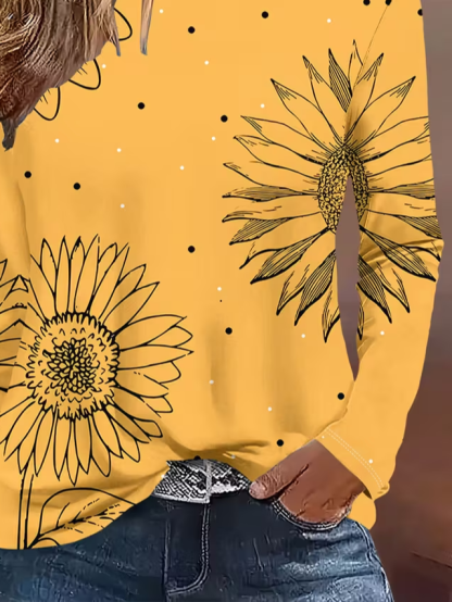 Women's Long Sleeve T-shirt Spring/Fall Yellow Sunflower Printing Jersey Crew Neck Daily Going Out Casual Top