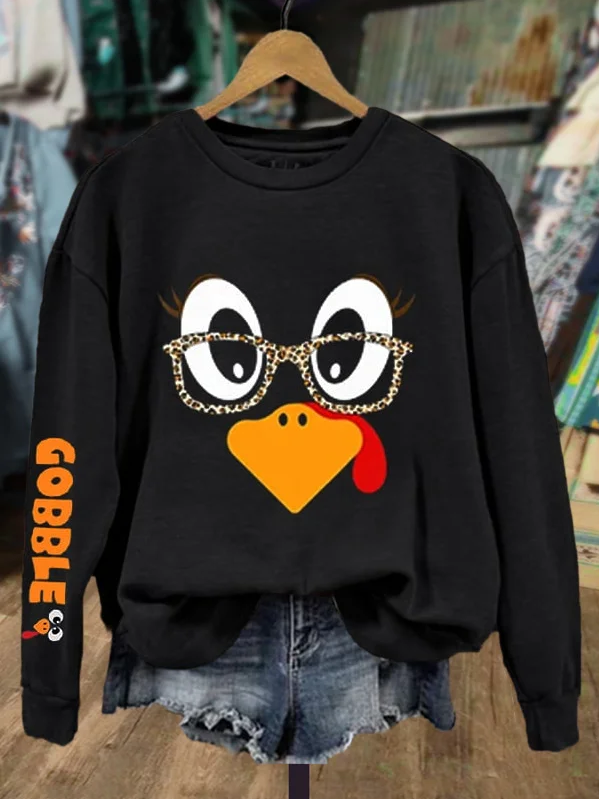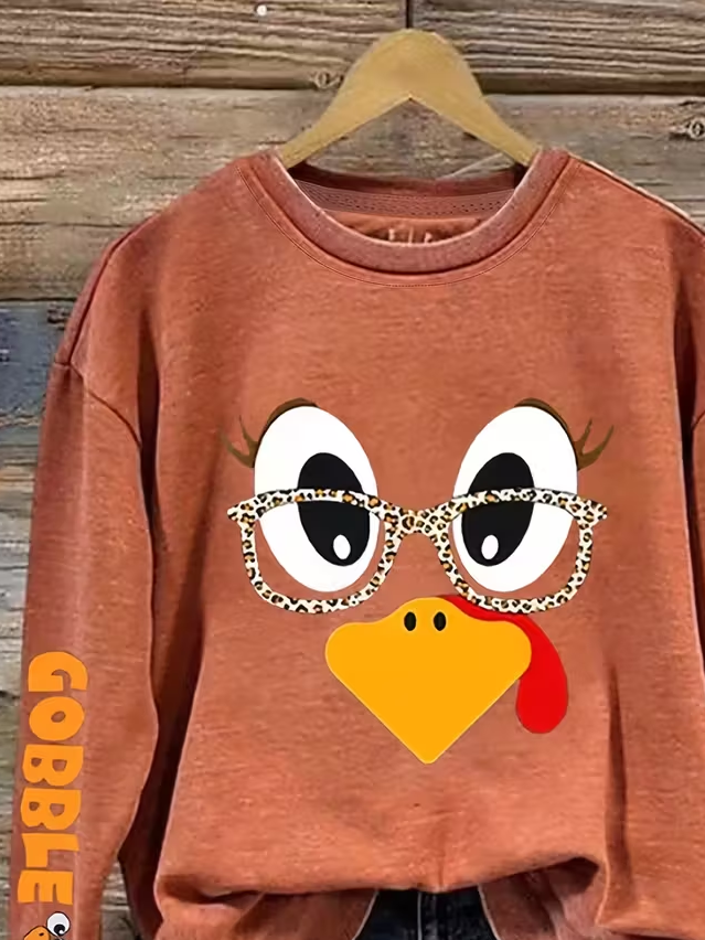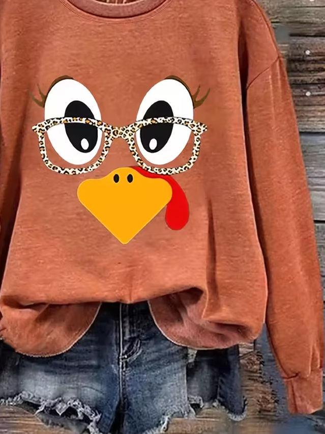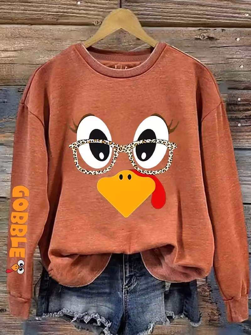 Women's Thanksgiving Turkey Print Casual Crew Neck Sweatshirt