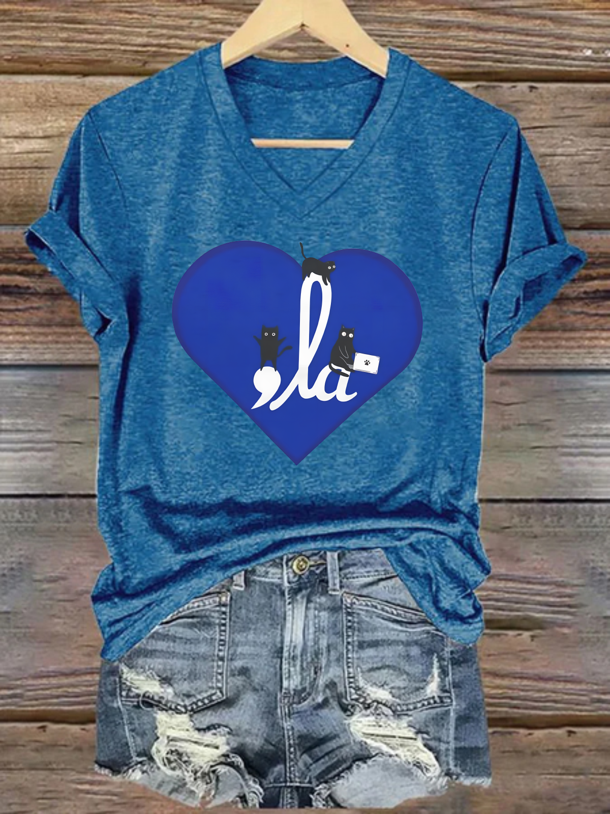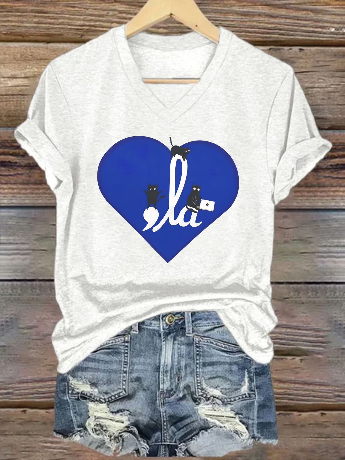 Comma La Kamala Cat Lady Heart Casual Crew Neck T-Shirt