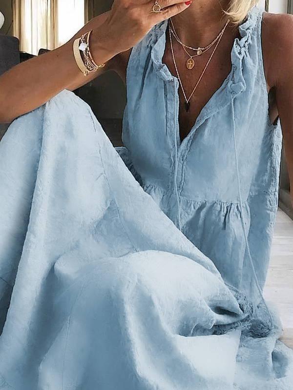 Cotton Casual V Neck Loose Dress