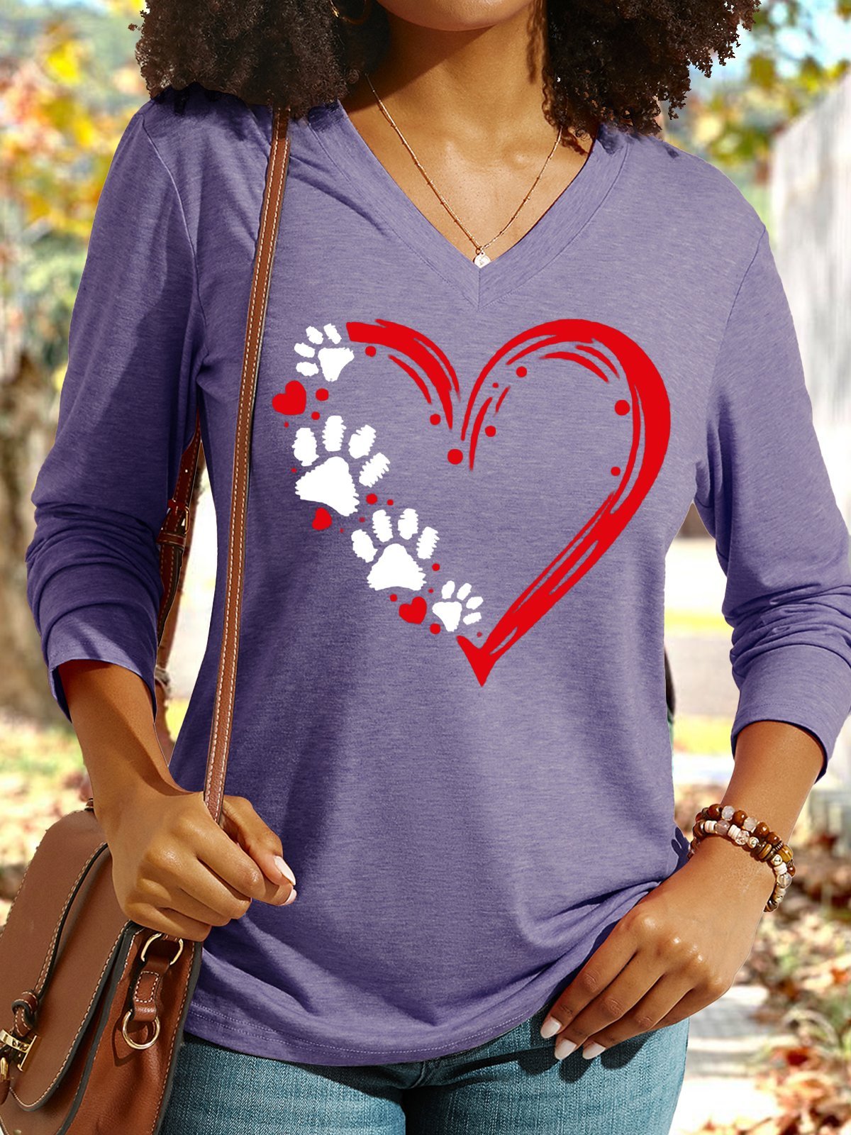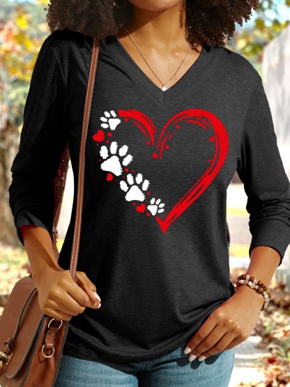 Women's Dog Paw Print V Neck Casual Graphic Shirt
