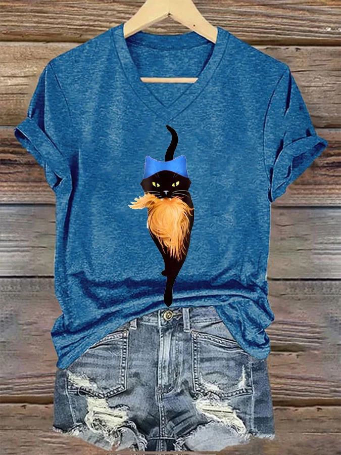 Women's Pussy Hat Cat&Orange Feminist Print T-Shirt