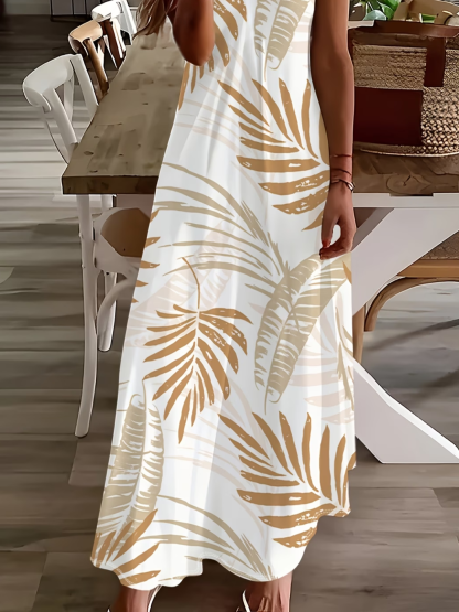 Women's Sleeveless Summer White Leaf Printing V Neck Daily Going Out Casual Maxi X-Line Slip Dress Dress