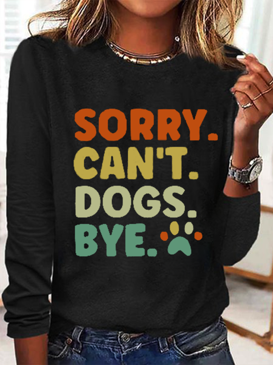 Women's Sorry Can't Dogs Bye. Dog Lovers Text Letters Simple Long Sleeve Shirt
