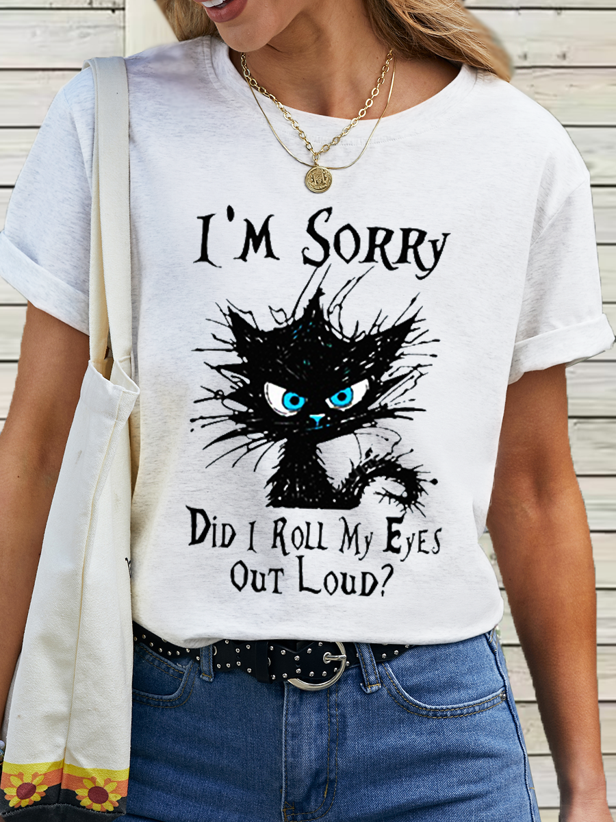 Women's Cotton Funny Cat Lovers I'm Sorry Did I Roll My Eyes Out Loud T-Shirt