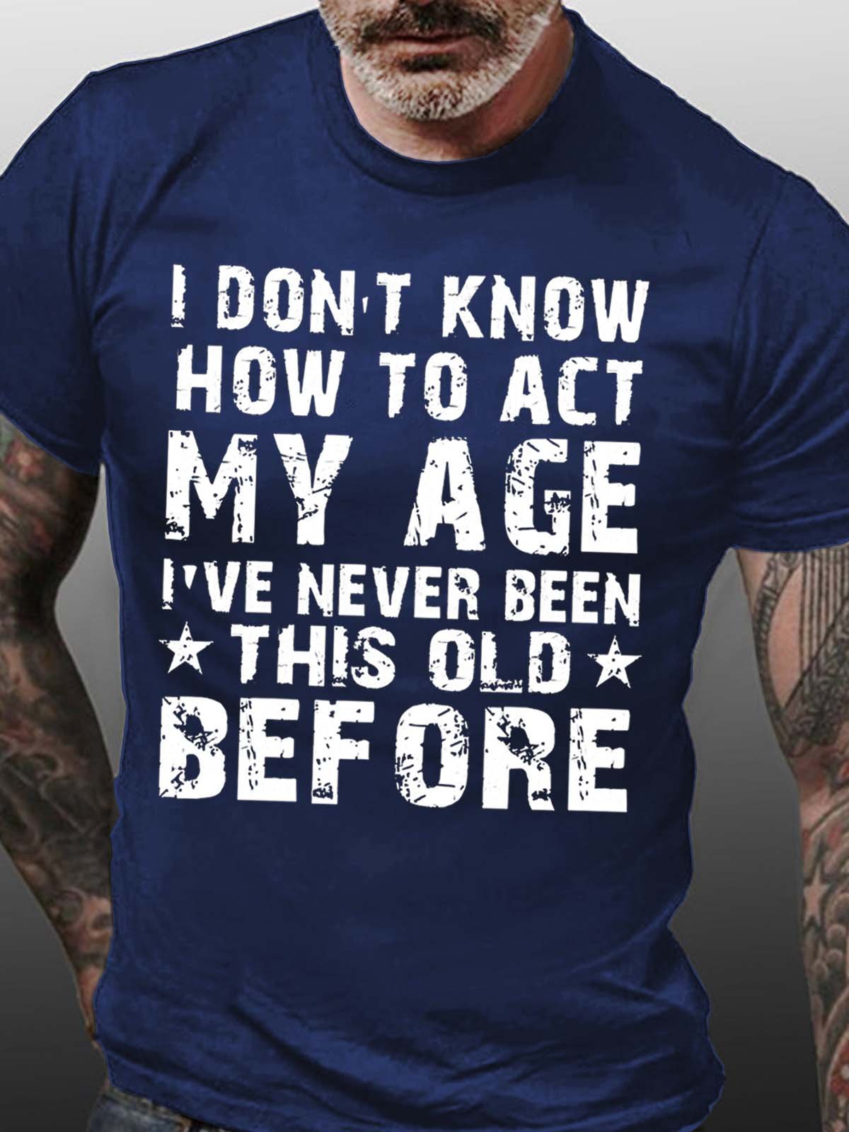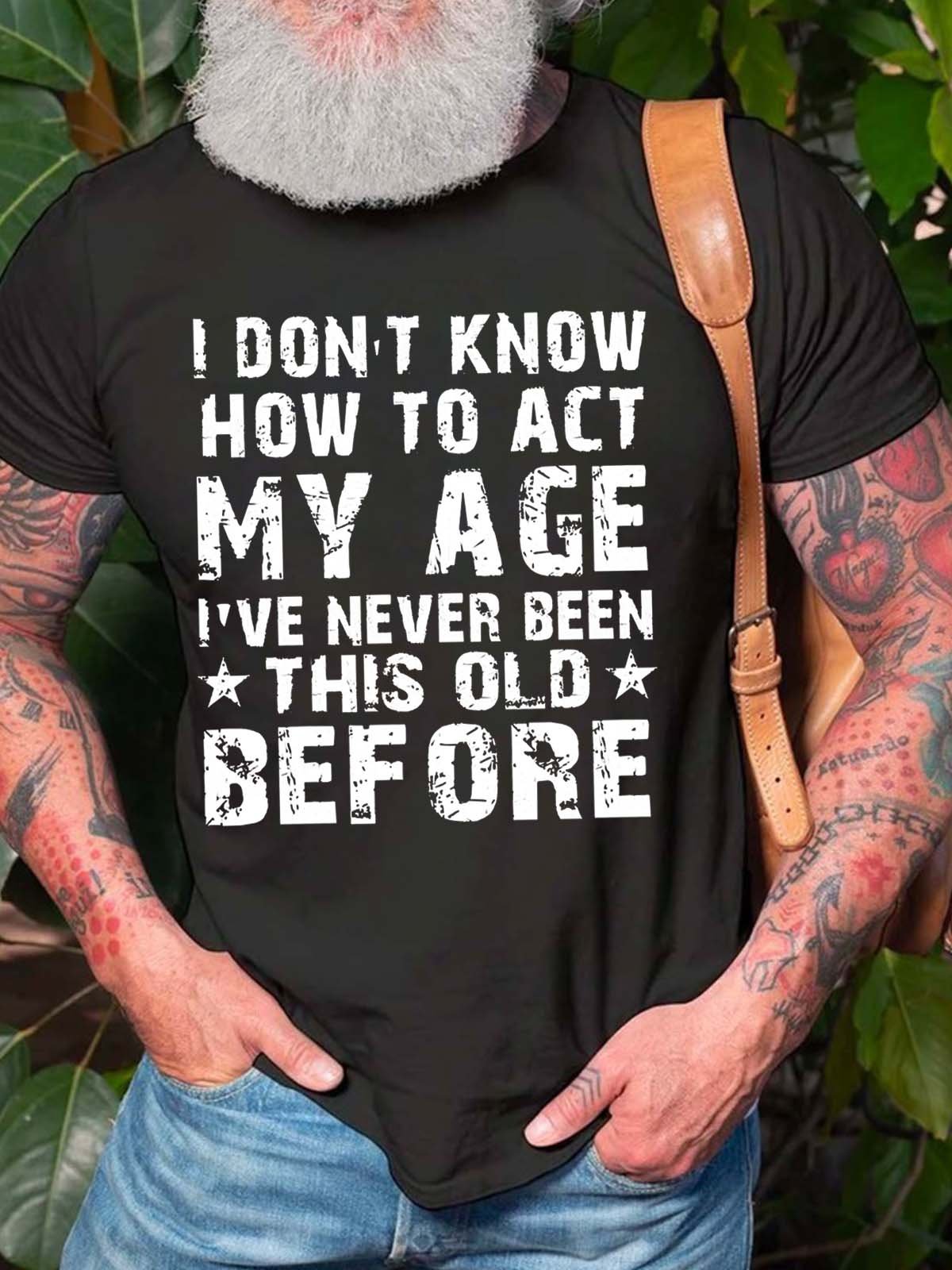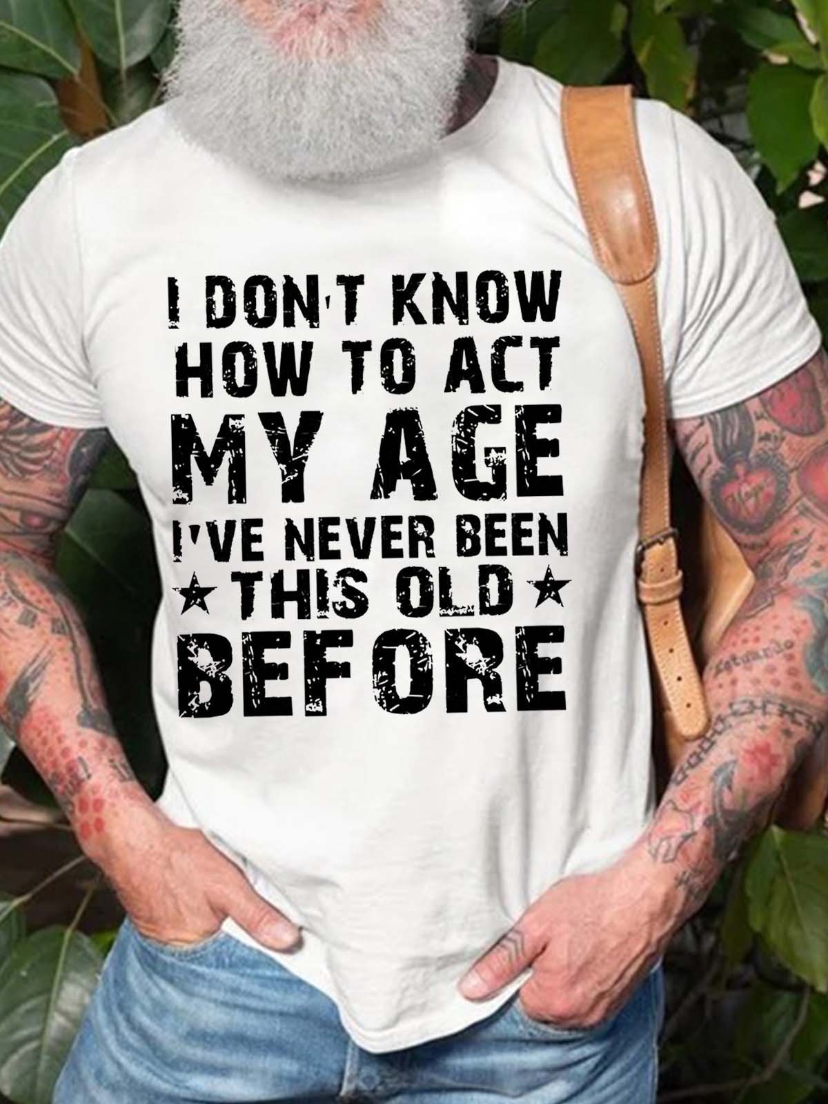 Men How To Act My Age Never Been This Old Before Letters Fit Casual T-Shirt