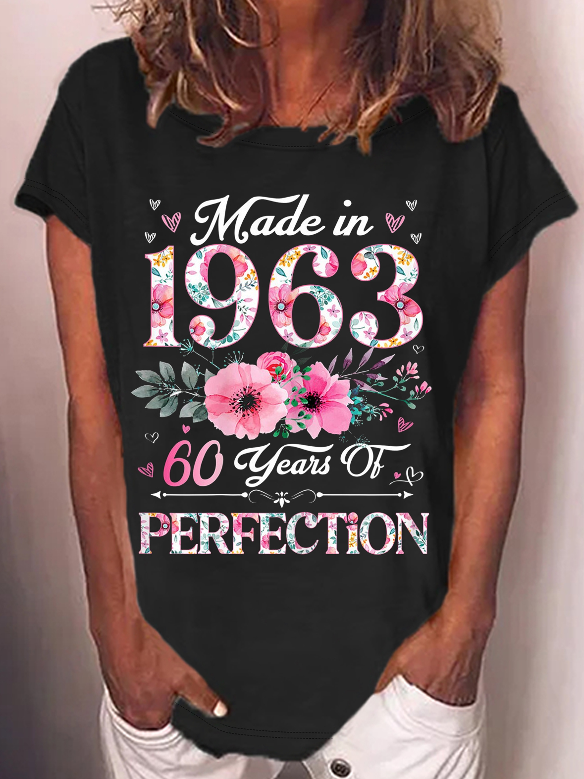 Women's 60 Year Old Made In 1963 Floral 60th Birthday Gifts Casual T-Shirt