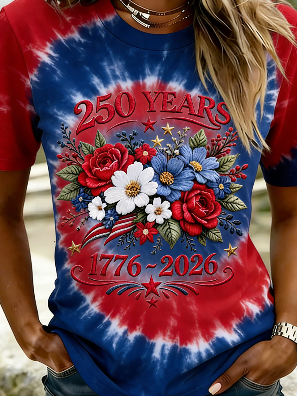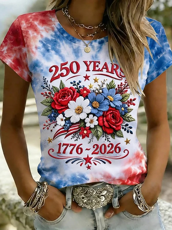 Cotton Crew Neck Text Letters Casual T-Shirt