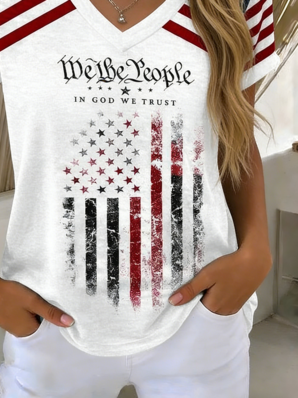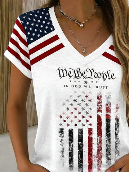 Gradient Pattern Casual Loose V Neck T-Shirt