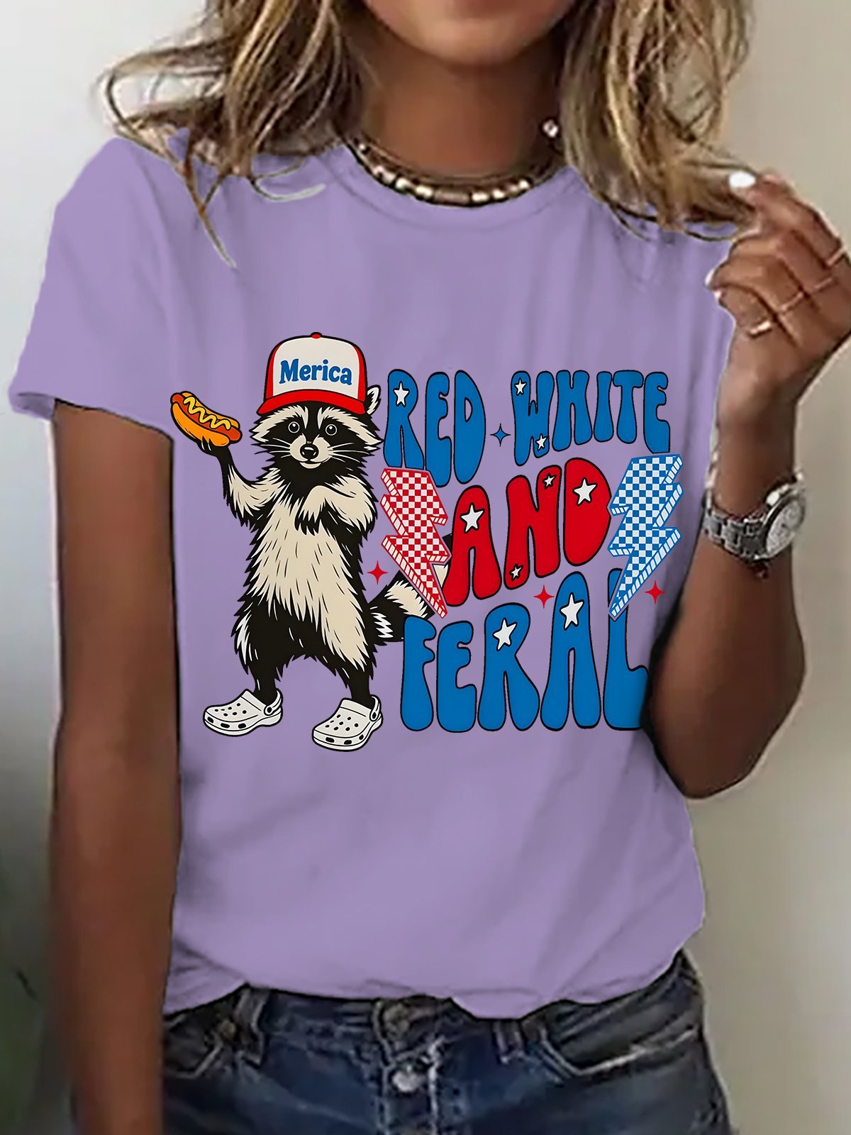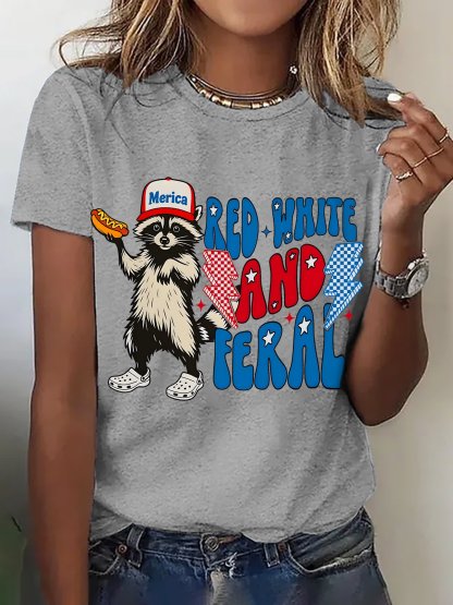 Hotdog Raccoon Red White And Feral Cotton T-shirt