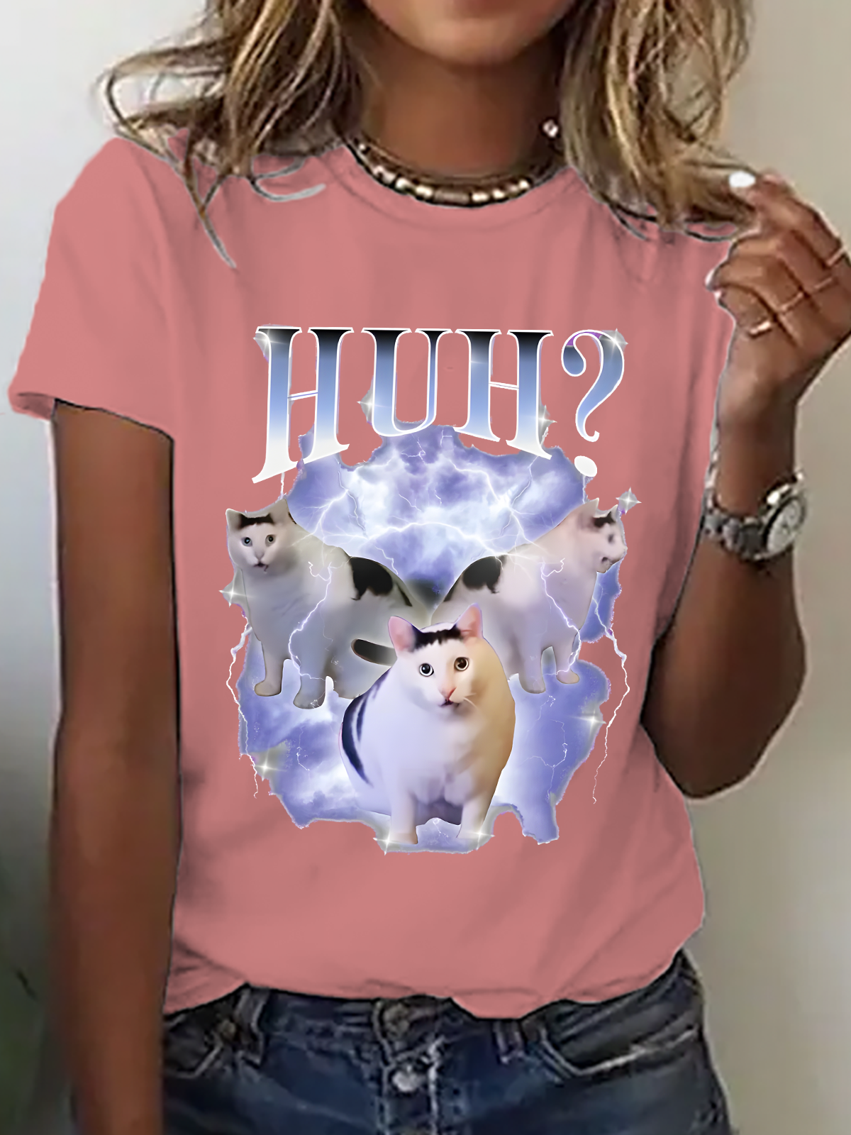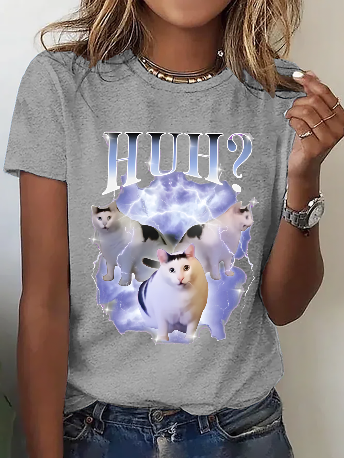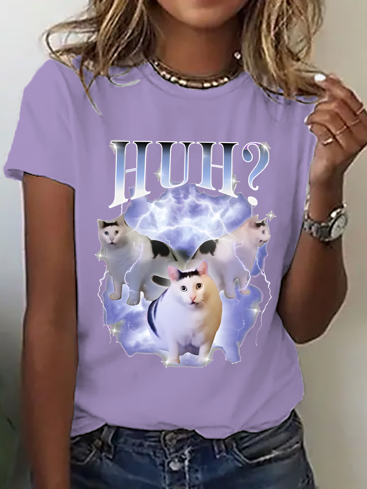 Huh Cat Chonky Ben Meme Cotton T-Shirt