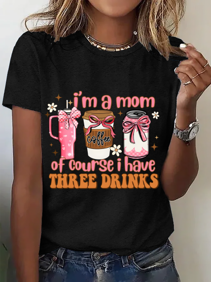 I Am A Mom Of Course I Have 3 Drinks Cotton T-Shirt