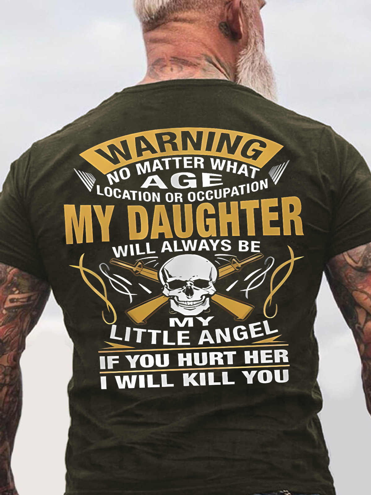 Men's Warning No Matter Age Location Or Occupation My Daughter Will Always Be My Little Angel Funny Graphic Printing Text Letters Cotton Crew Neck Casual T-Shirt