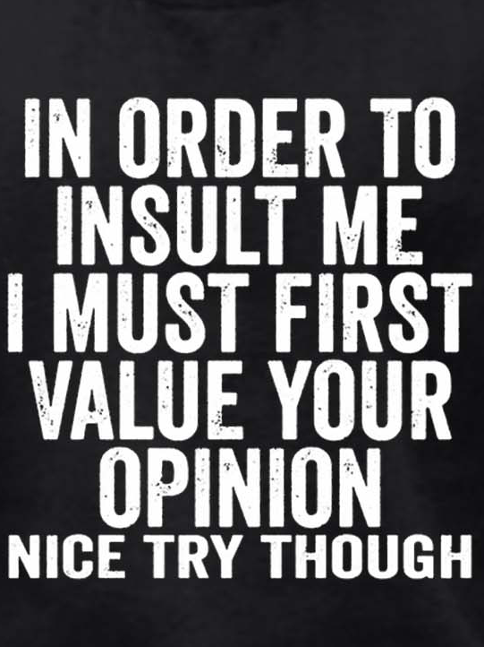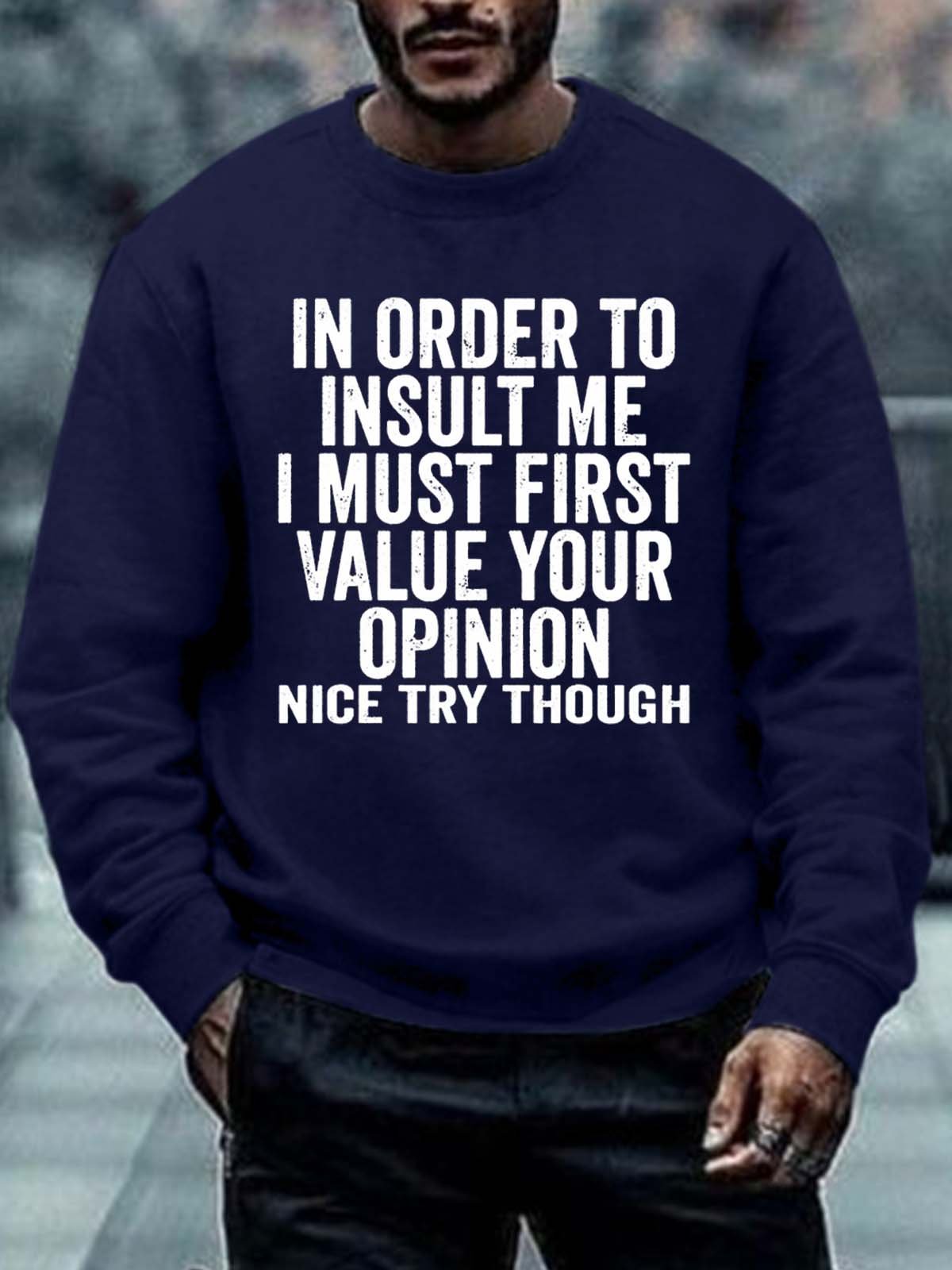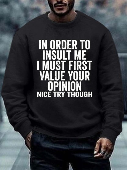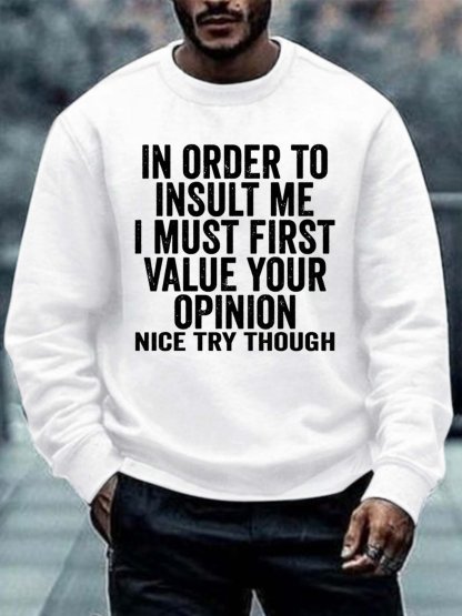 Men In Order To Insult Me Value Your Opinion Letters Regular Fit Sweatshirt